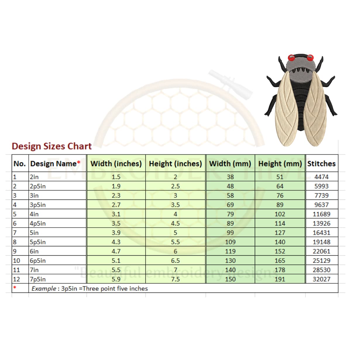 Cicada embroidery design
