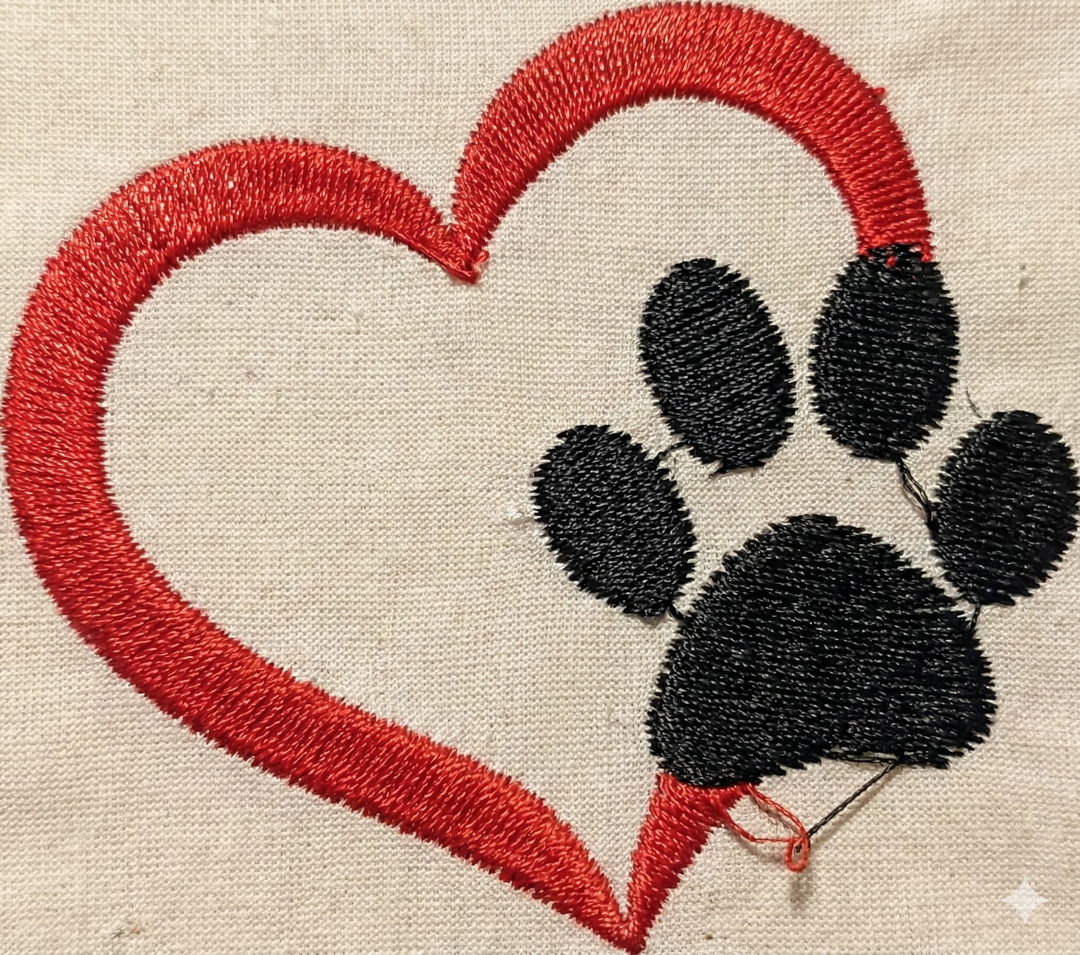 -60%Paw with Heart Machine Embroidery Design – dog paw silhouette with heart in filled stitch. Ideal for pet, dog, and heart-themed embroidery projects on clothing, quilts, bags, and décor. Instant download digital file.