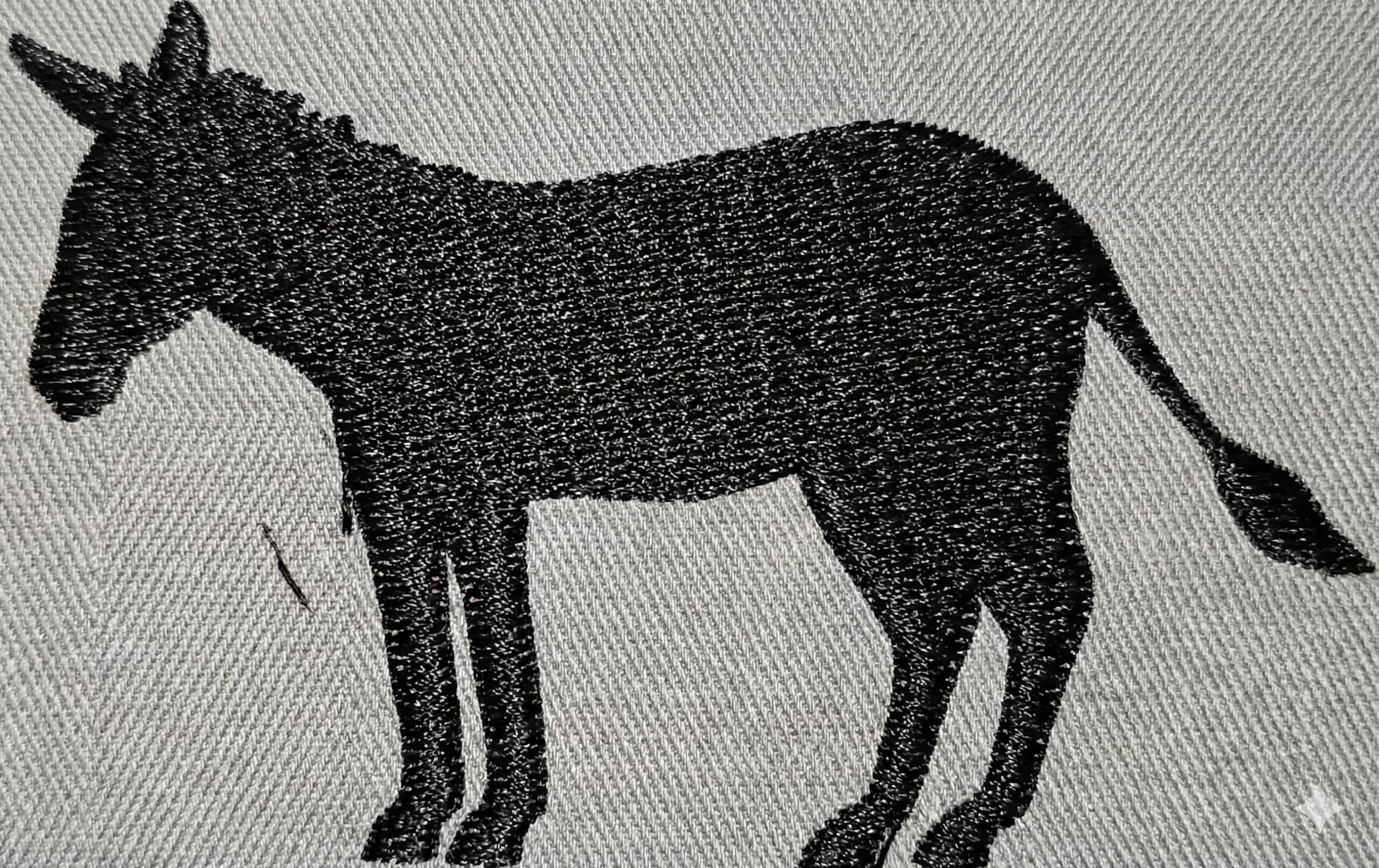 Donkey Machine Embroidery Design – mini filled stitch donkey silhouette pattern, ideal for farm animals, decorative, and creative embroidery projects. Available in sizes from 2 to 7.5 inches, ready for instant download and compatible with popular embroidery machines.