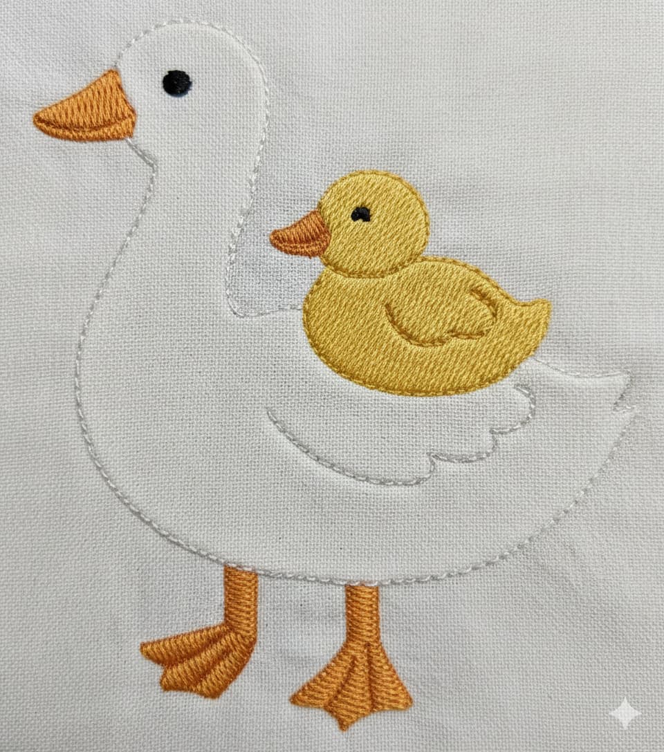Mother Duck with Duckling embroidery design