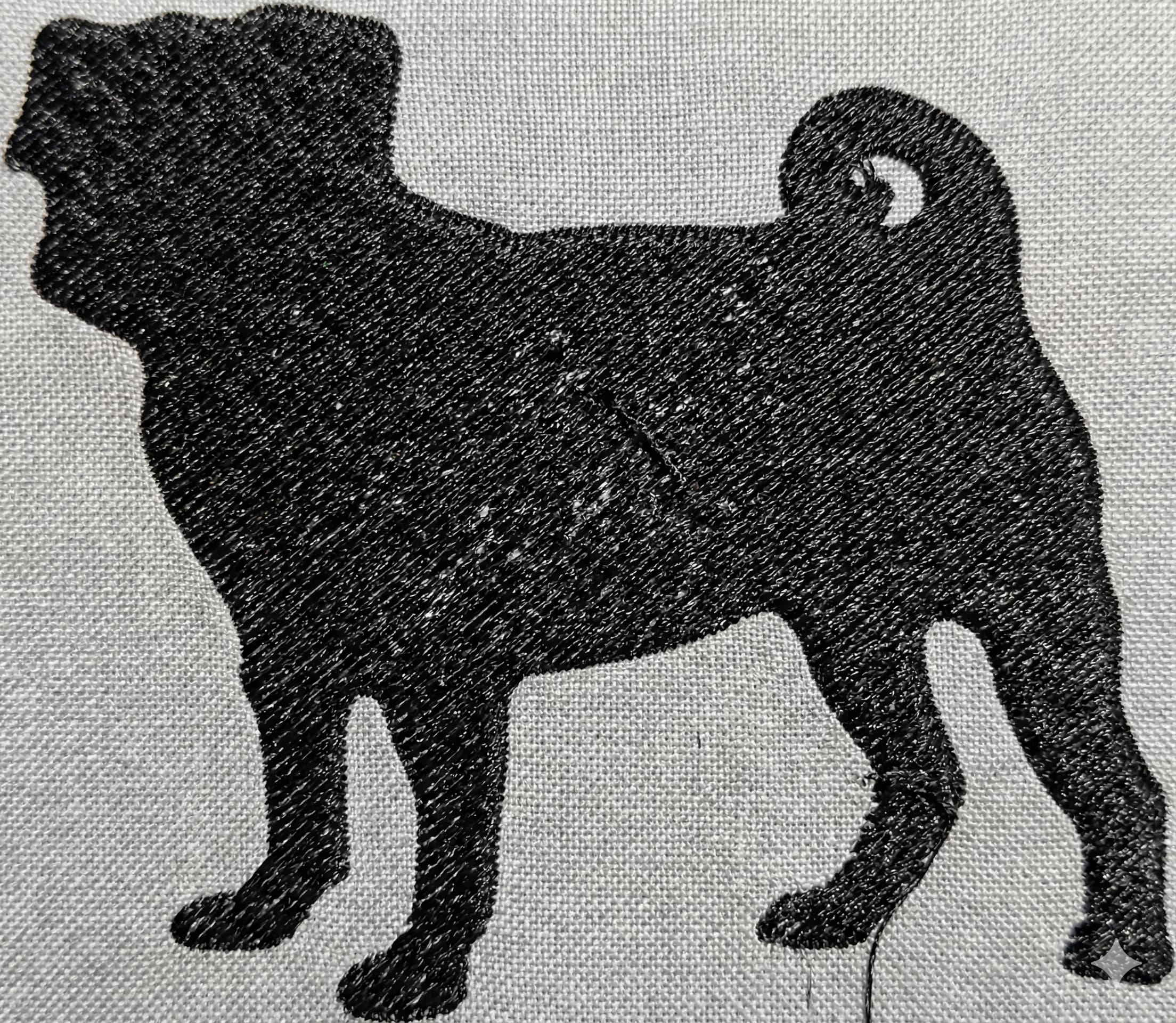 Pug Machine Embroidery Design – mini filled stitch Pug silhouette pattern, ideal for puppy, Dutch Bulldog, decorative, and creative embroidery projects. Available in sizes from 1 to 7.5 inches, ready for instant download and compatible with popular embroidery machines.