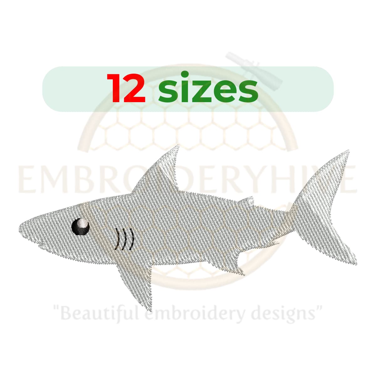 Shark Machine Embroidery Design – mini shark silhouette in filled stitch. Ideal for fish, sea animal, and ocean-themed embroidery projects on clothing, quilts, bags, and décor. Available in sizes 2 to 7.5 inches. Instant download digital file.