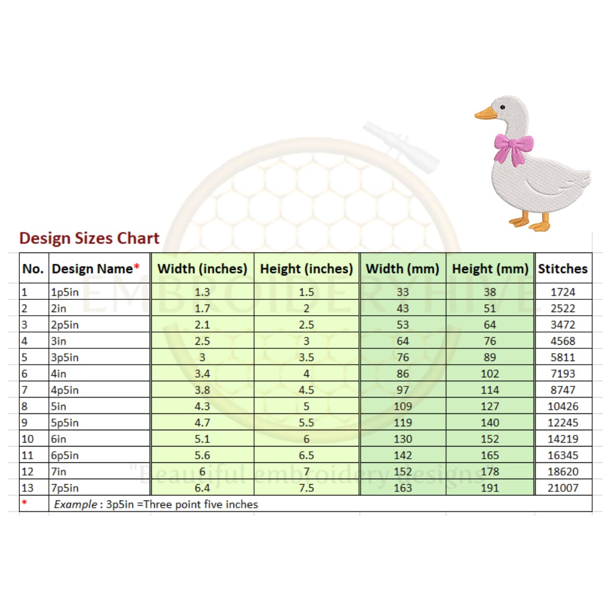 silly goose with bow embroidery design, cute goose machine embroidery design 1.5 to 7.5 inch instant download
