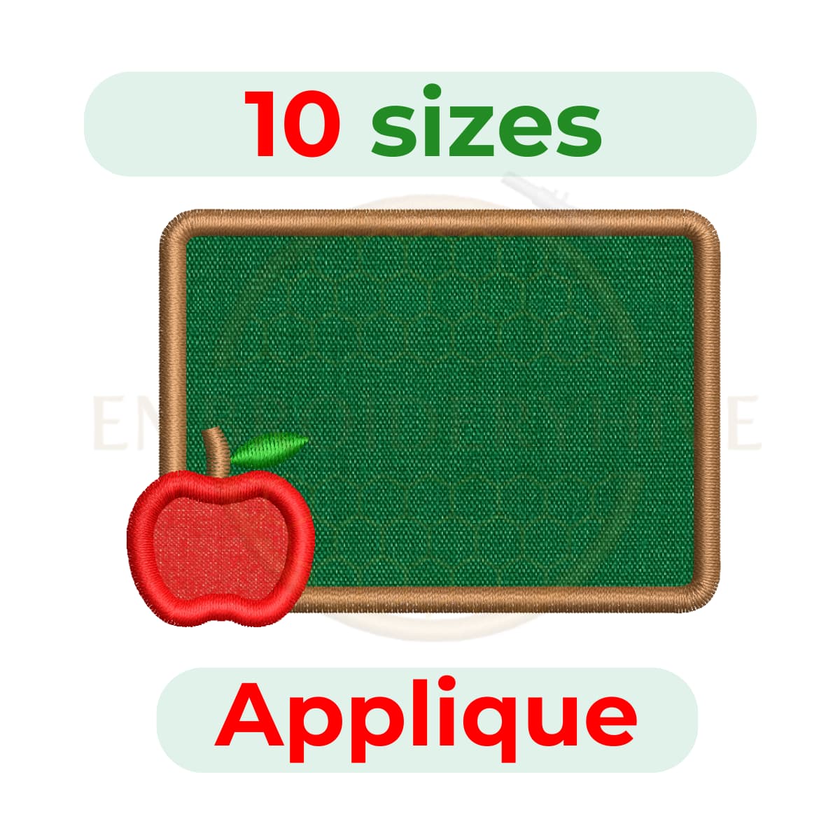 Back to School Chalkboard Applique Embroidery Design, digital embroidery file, 10 sizes, instant download.