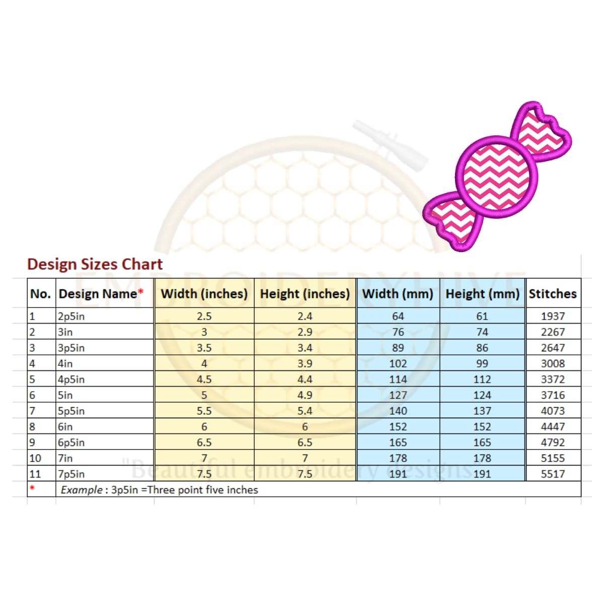 Candy Applique Embroidery Design (2.5–7.5 inch)