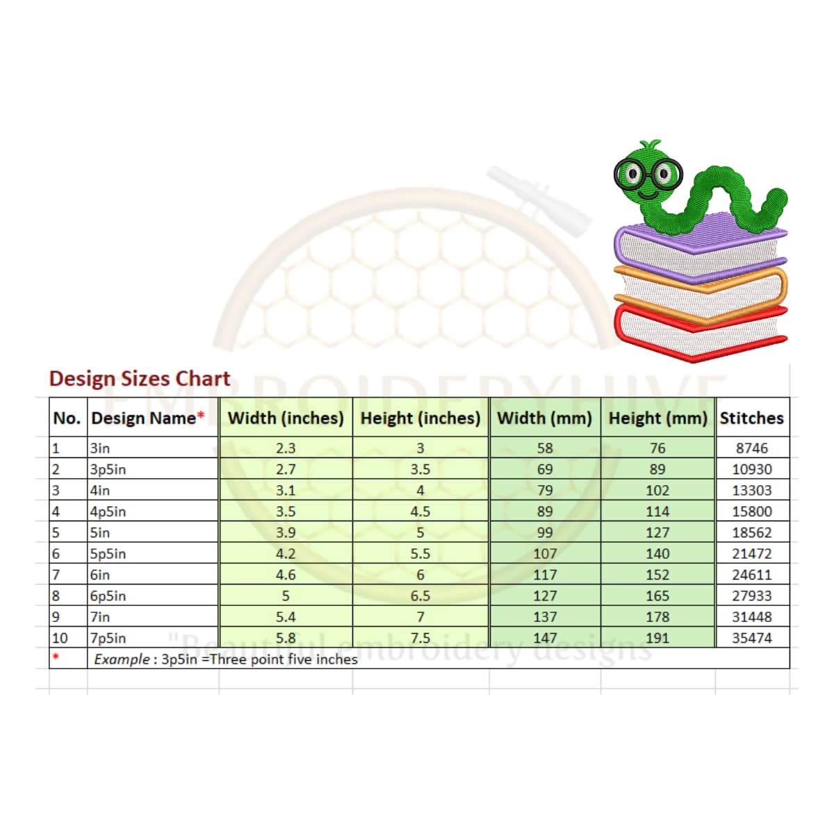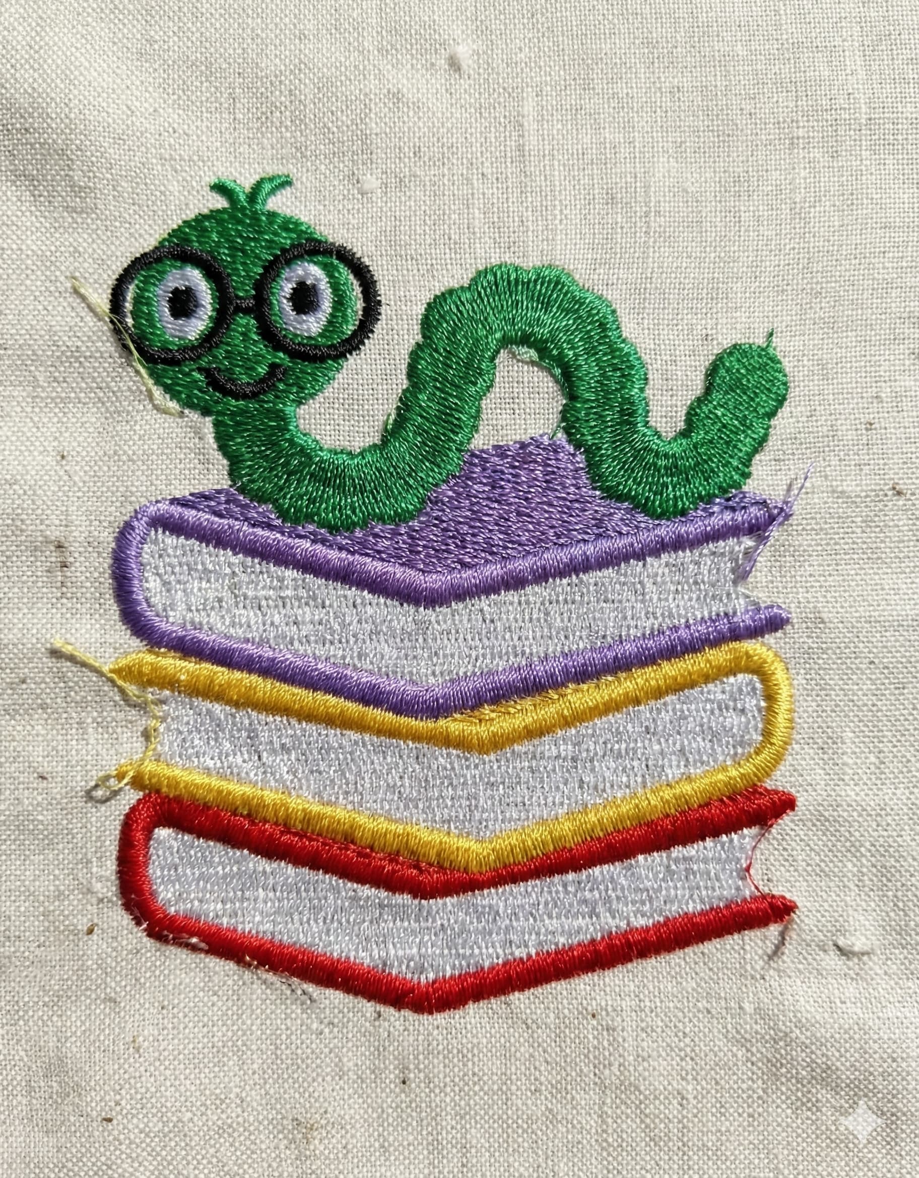 Bookworm Machine Embroidery Design – mini filled stitch and book silhouette pattern perfect for literary, decorative, and creative projects. Available in sizes from 3 to 7.5 inches, ready for instant download and use with popular embroidery machines.