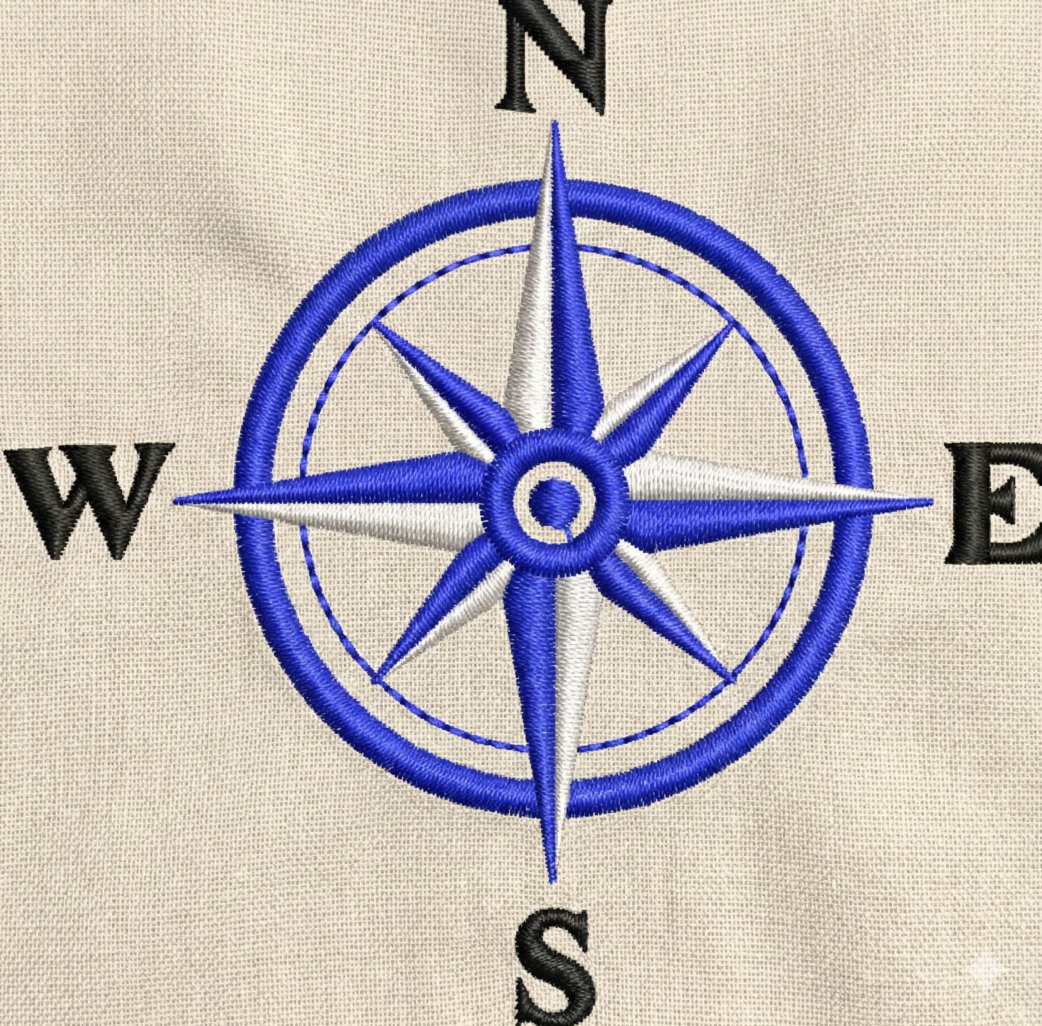 Compass Machine Embroidery Design – mini filled stitch nautical compass pattern, ideal for symbolic, decorative, and creative embroidery projects. Available in sizes from 2.5 to 7.5 inches, ready for instant download and compatible with popular embroidery machines.