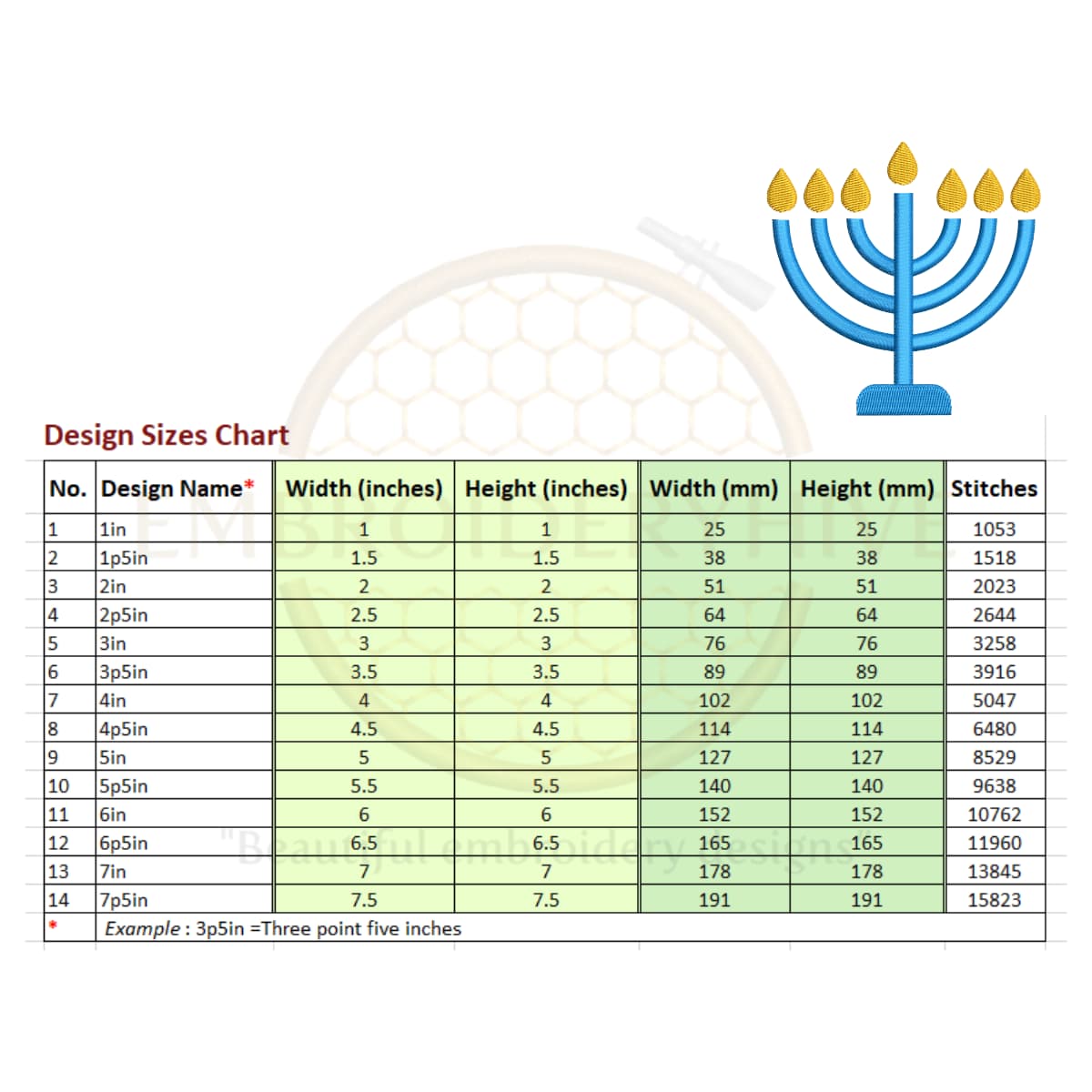 Hanukah Menorah Machine Embroidery Design – mini silhouette pattern perfect for Hanukah, festive, decorative, and creative projects. Available in sizes from 1 to 7.5 inches, ready for instant download and use with popular embroidery machines.