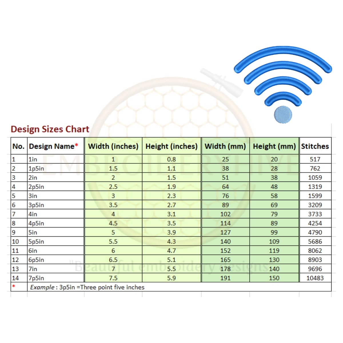 Wi-Fi Symbol Machine Embroidery Design – mini silhouette pattern perfect for tech, symbols, decorative, and creative projects. Available in sizes from 1 to 7.5 inches, ready for instant download and use with popular embroidery machines.