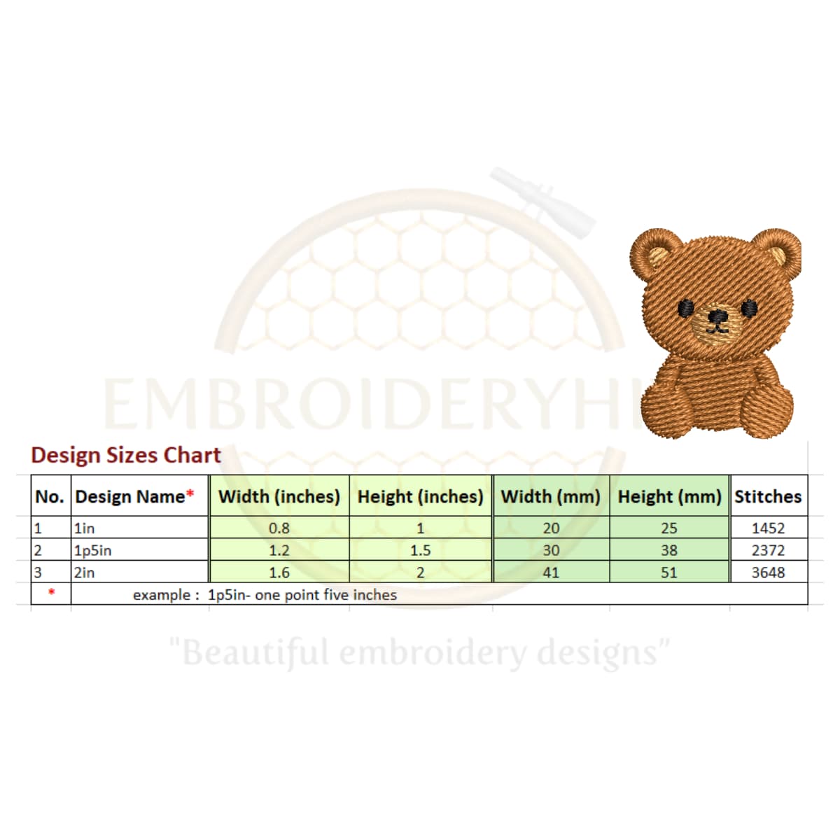 Baby Bear Mini Embroidery design set, 1–2 inches. Instant machine embroidery download.