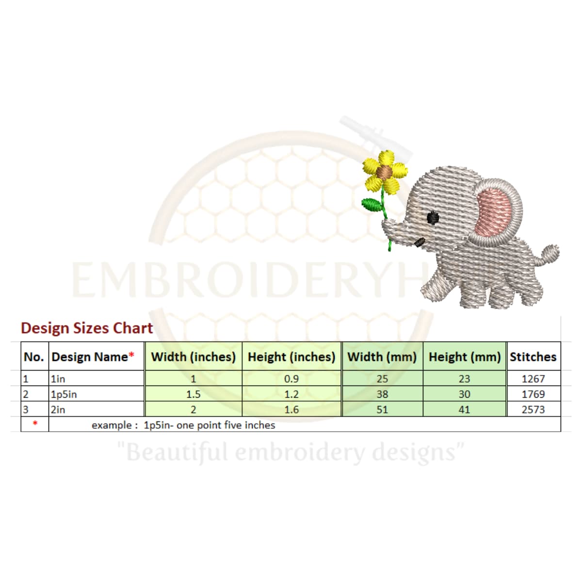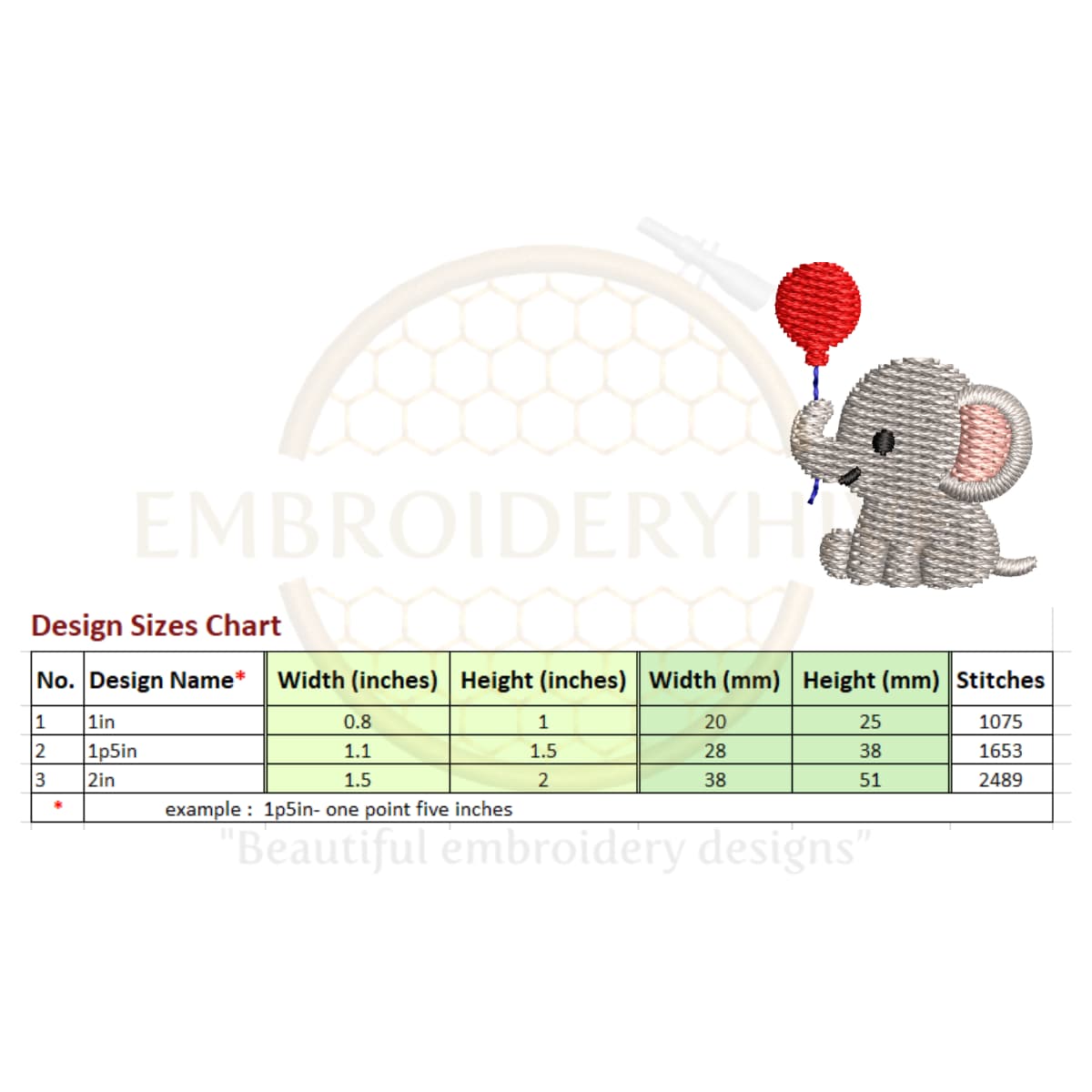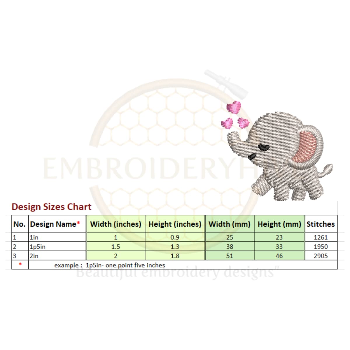 Cute Baby Elephant Embroidery Set , 1–2 inches. Instant machine embroidery download.