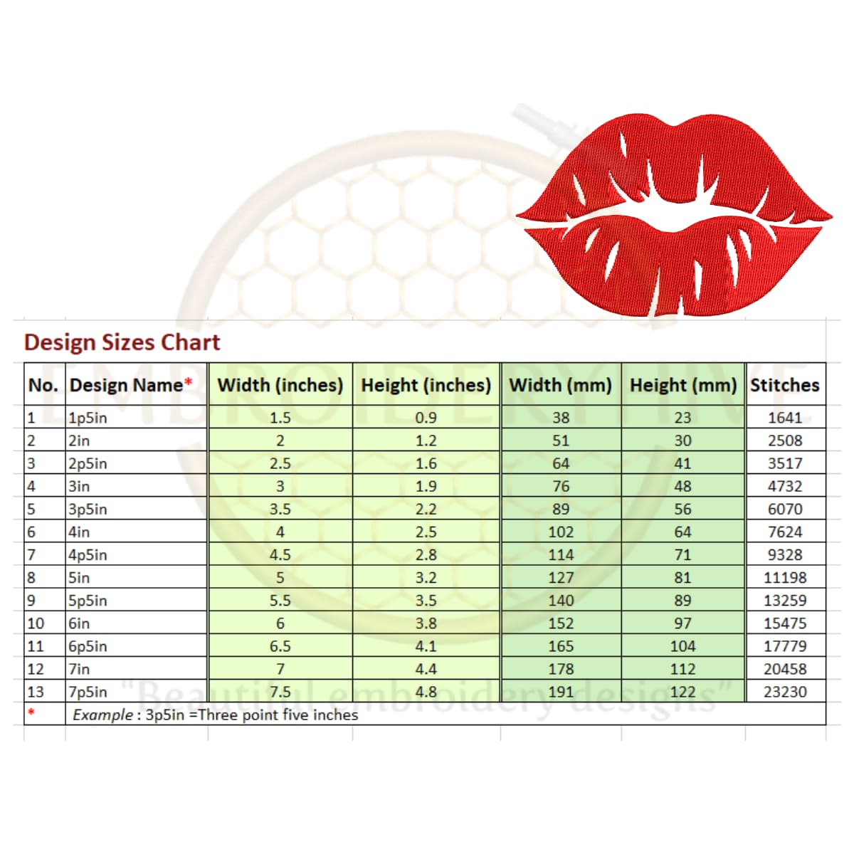 -60%Kissing Lips Embroidery Design (1.5–7.5 inch) – Mini Lip Silhouette, Lipstick-Inspired Machine Embroidery. Ideal for fashion, accessories, and personalized gifts, this instant download digital file offers multiple sizes for versatile and detailed stitching, making it perfect for any embroidery project.