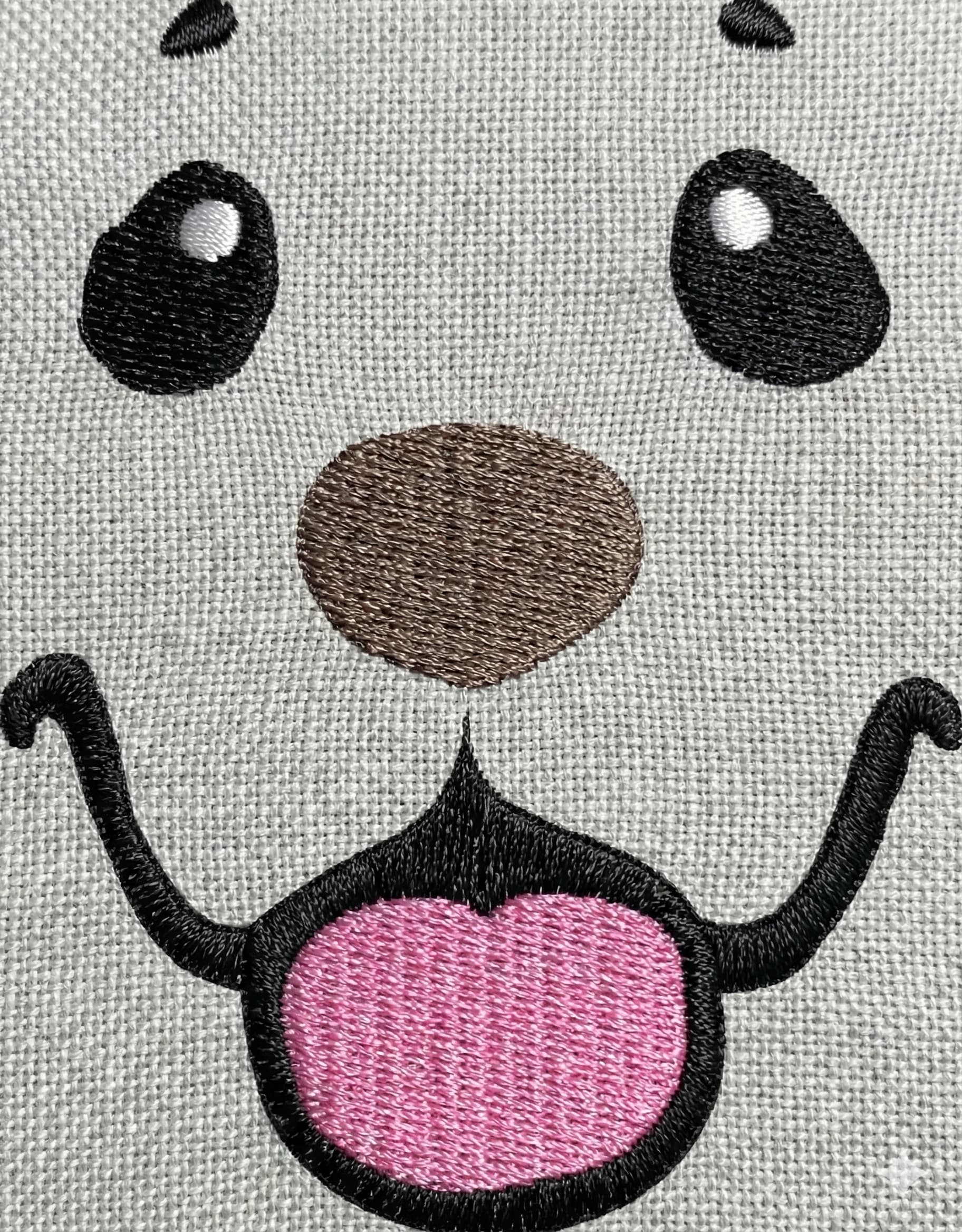 Adorable puppy face embroidery design available in 12 sizes, perfect for adding charm to any project.