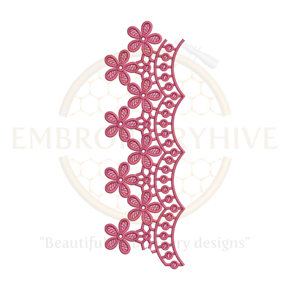 Floral Border Embroidery Design – Pink Blossom Curve (E-0873)