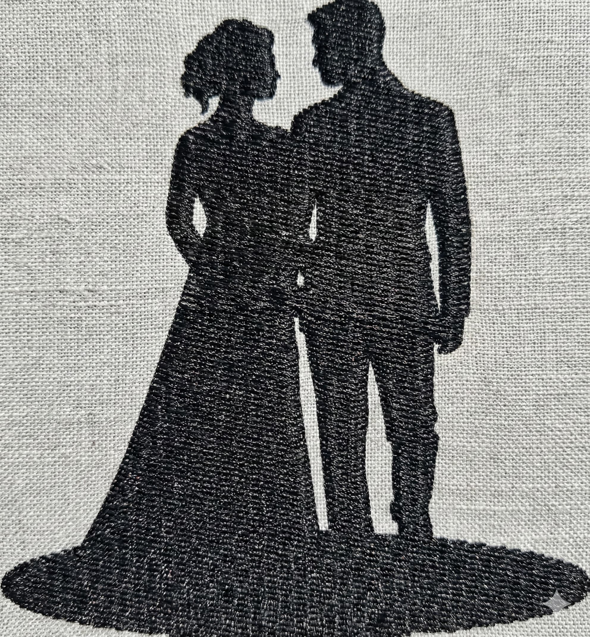 Bride and Groom Embroidery Design in mini silhouette style, available in sizes 1.5″ to 7.5″. Perfect for wedding embroidery projects, gifts, and home decor. Instant download digital file for machine embroidery.