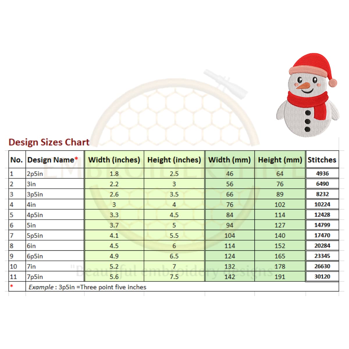 Snowman Embroidery Design (2.5″–7.5″) – Mini Snowman, Holiday Machine Embroidery, Fill Stitch, Silhouette, Instant Download Digital File.