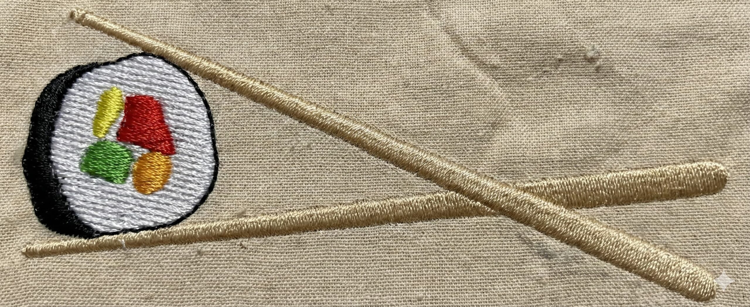 Chopsticks with Sushi Roll Embroidery Design (2–7.5 inch) – Mini Sushi, Machine Embroidery, Instant Download Digital File