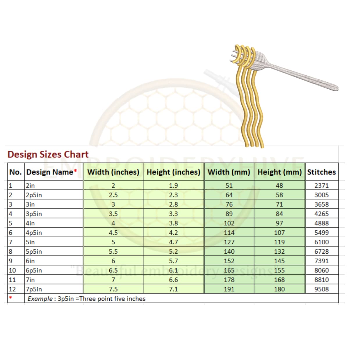Noodles in Fork Embroidery Design (2–7.5 inch) – Mini Noodles, Food Embroidery, Kitchen Embroidery, Machine Embroidery, Instant Download Digital File.