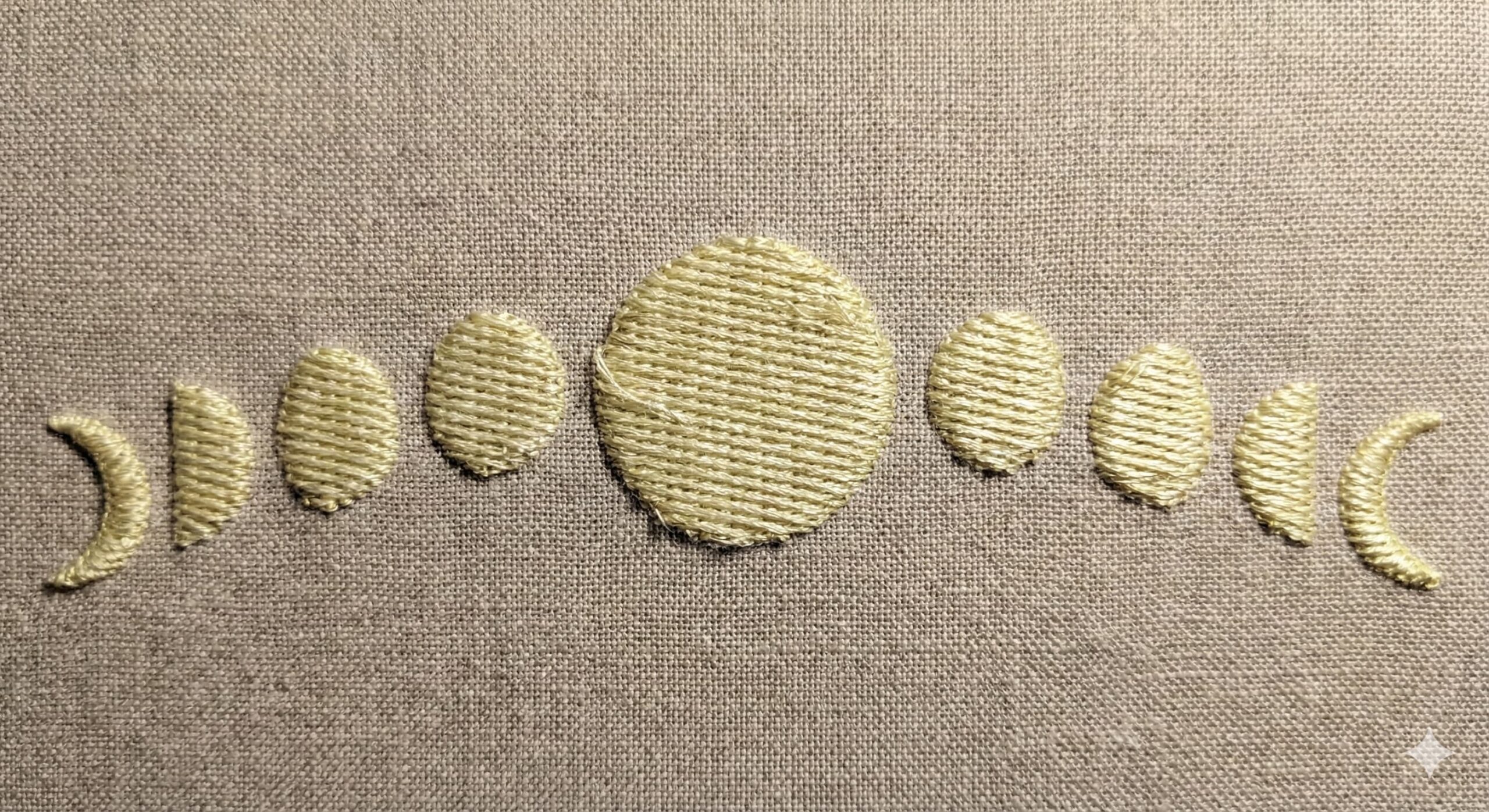 Moon phases embroidery design in 2.5–7.5 inch sizes. Ideal for lunar projects, celestial crafts, and astrology-themed embroidery. Instant download file.