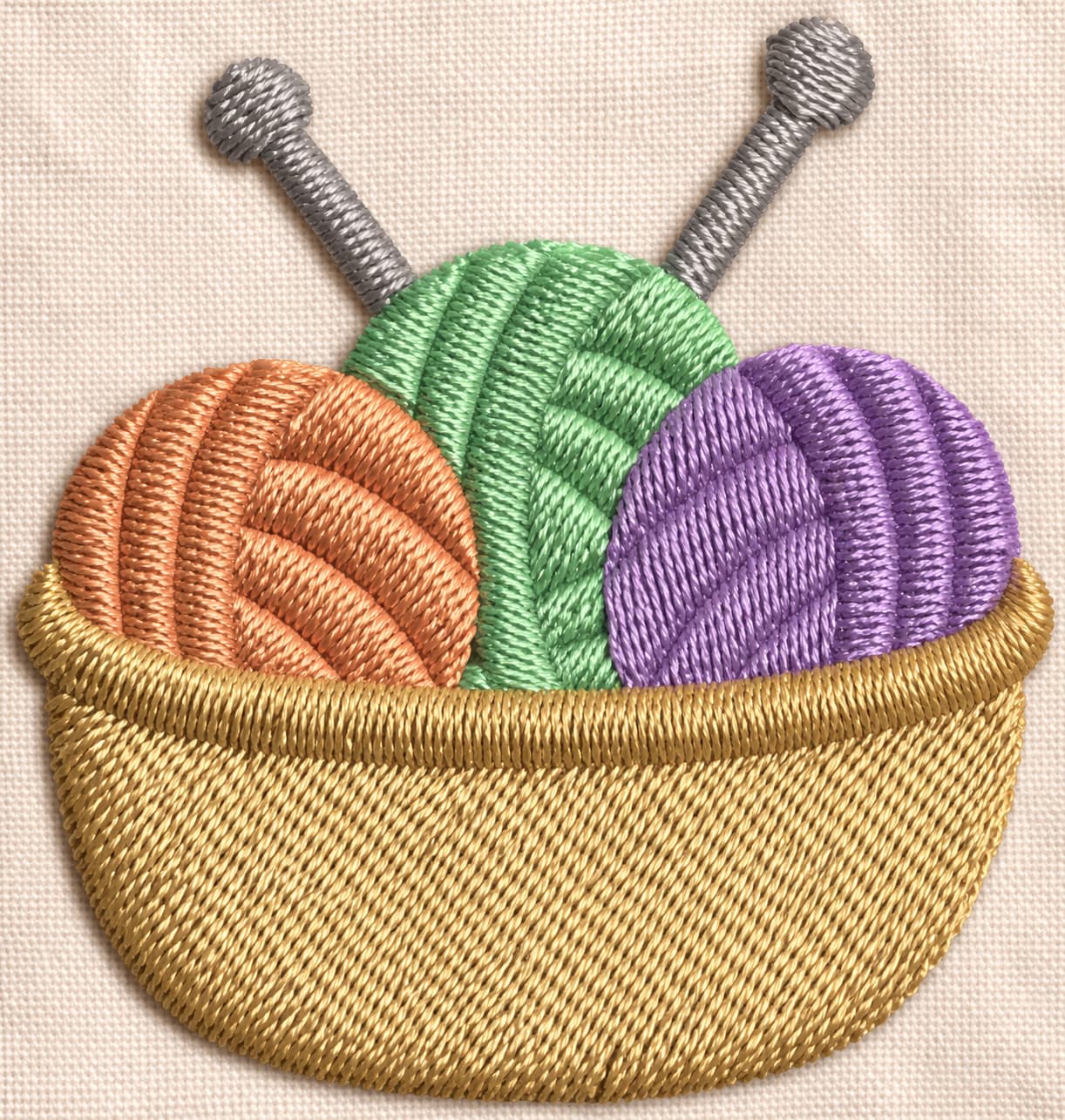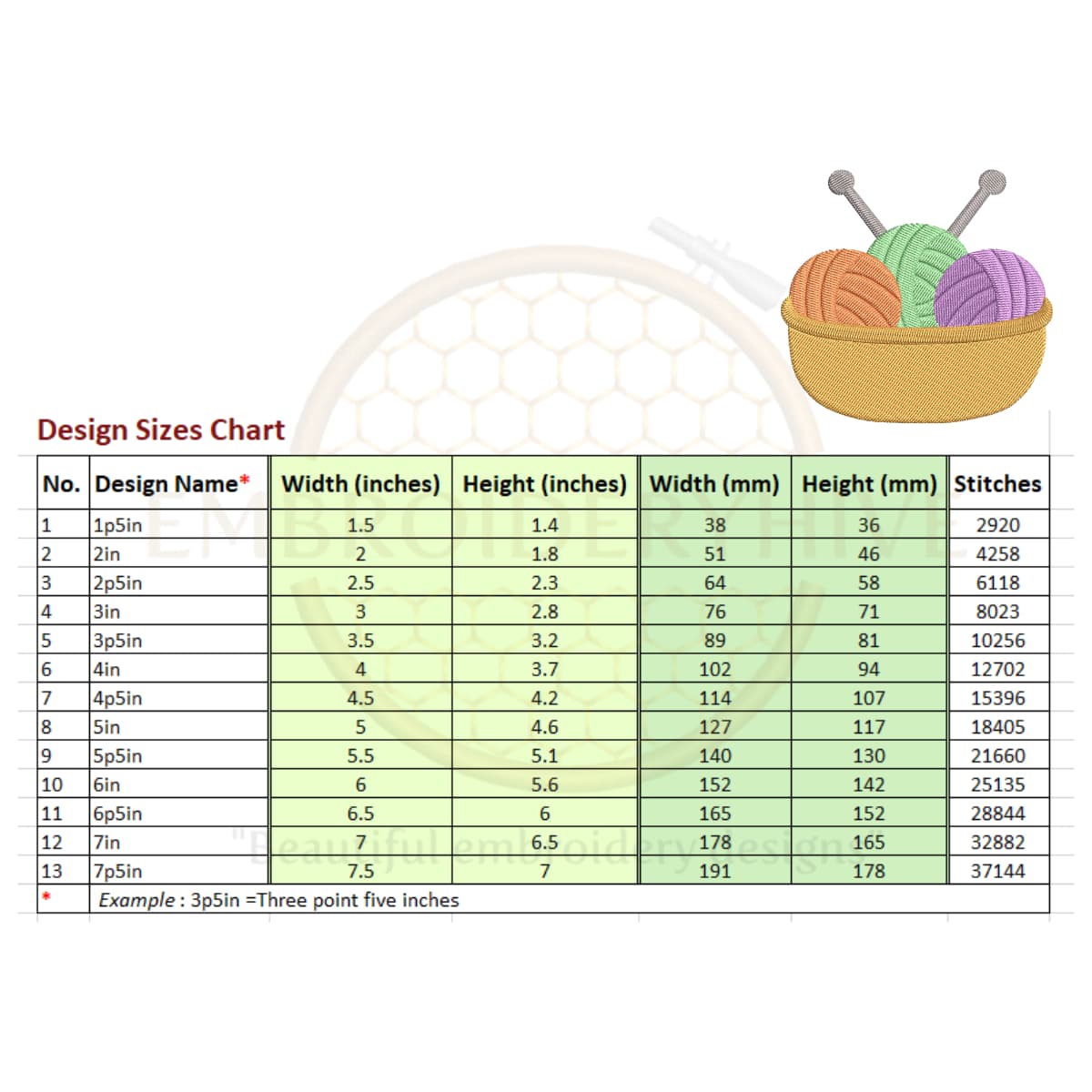-60%Basket with knitted needles embroidery design, 1.5-7.5 inch. machine embroidery, instant Download