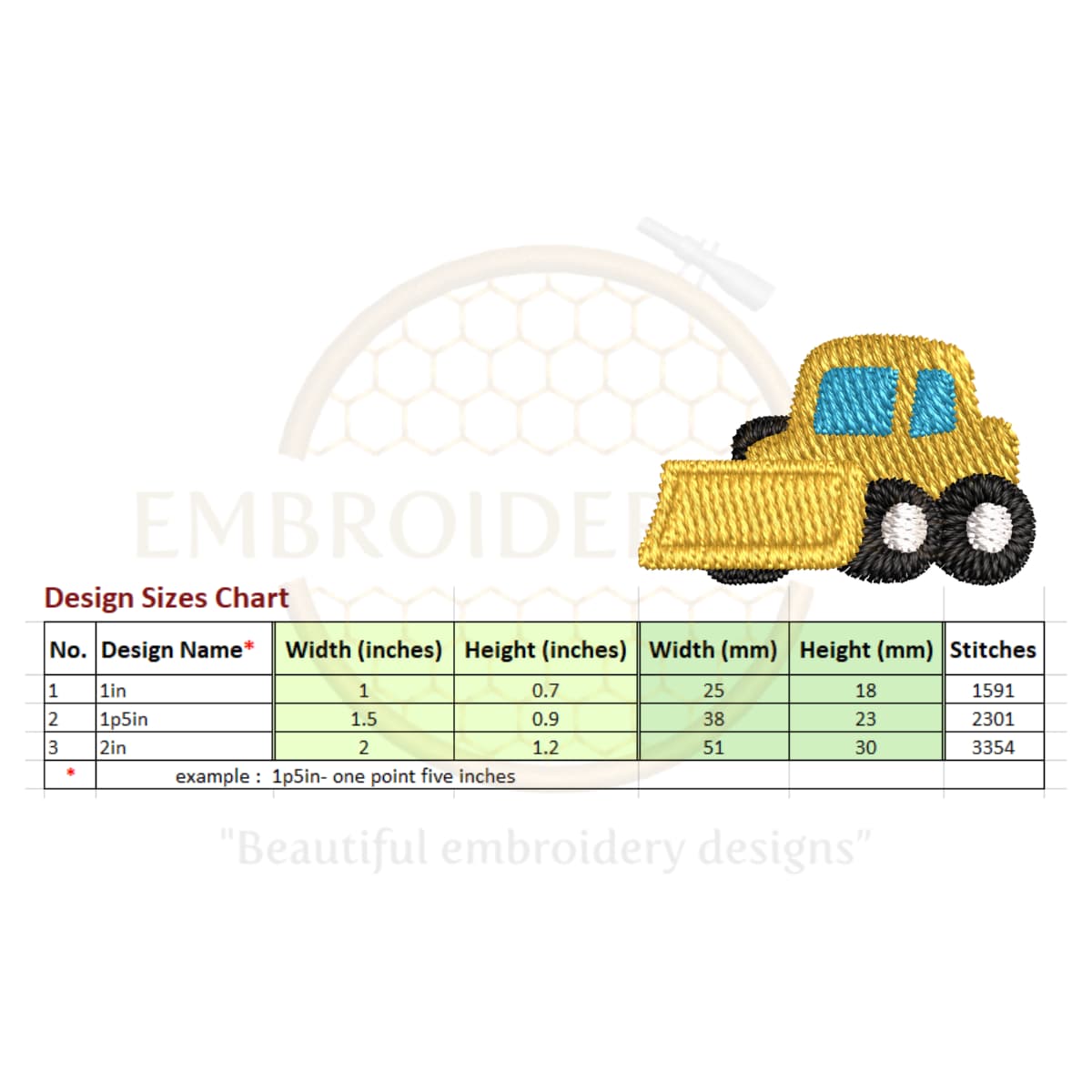 1. Bulldozer embroidery design.