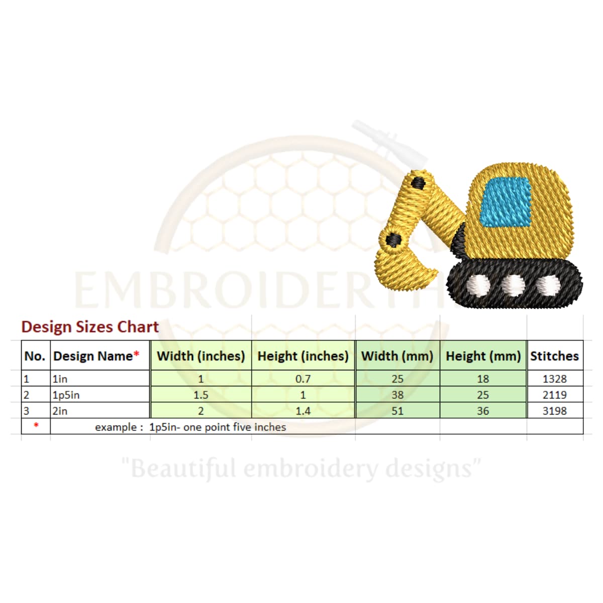 3. Excavator embroidery design