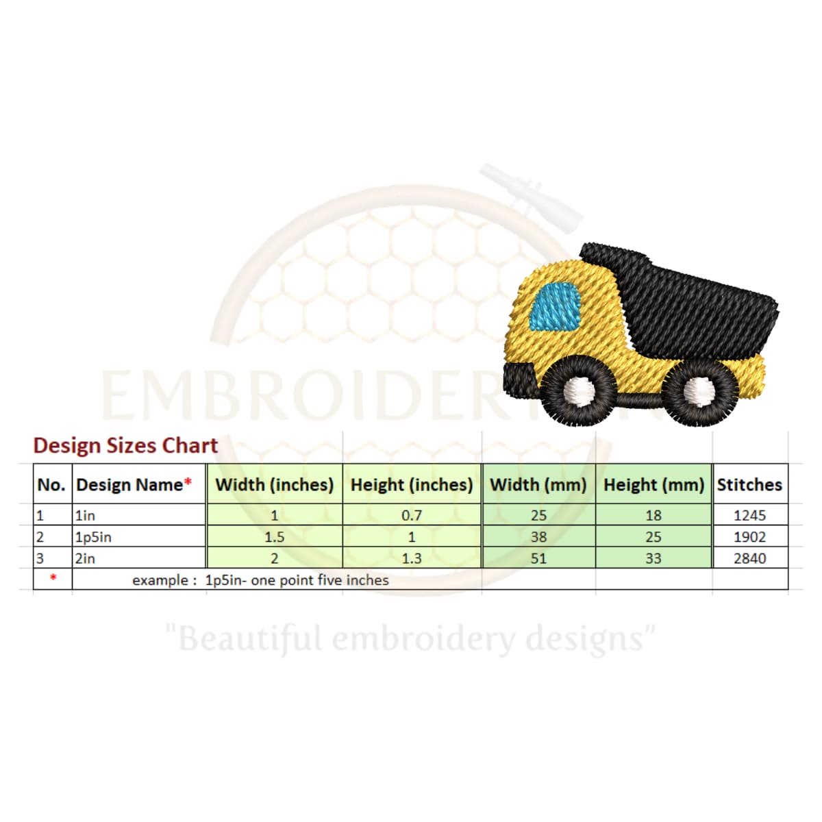 4. Dump truck embroidery design