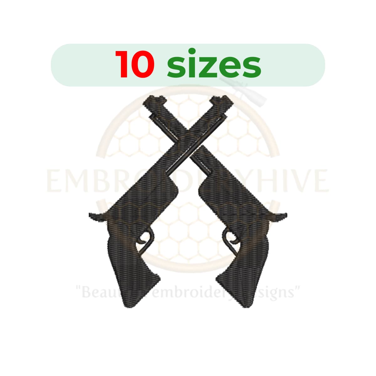 Crossed Revolver Embroidery Design (3–7.5 inch) – Mini Revolver, Silhouette, Machine Embroidery, Instant Download Digital File