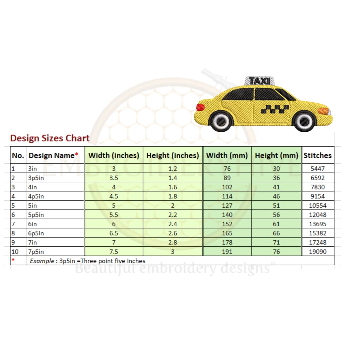 Taxi embroidery design
