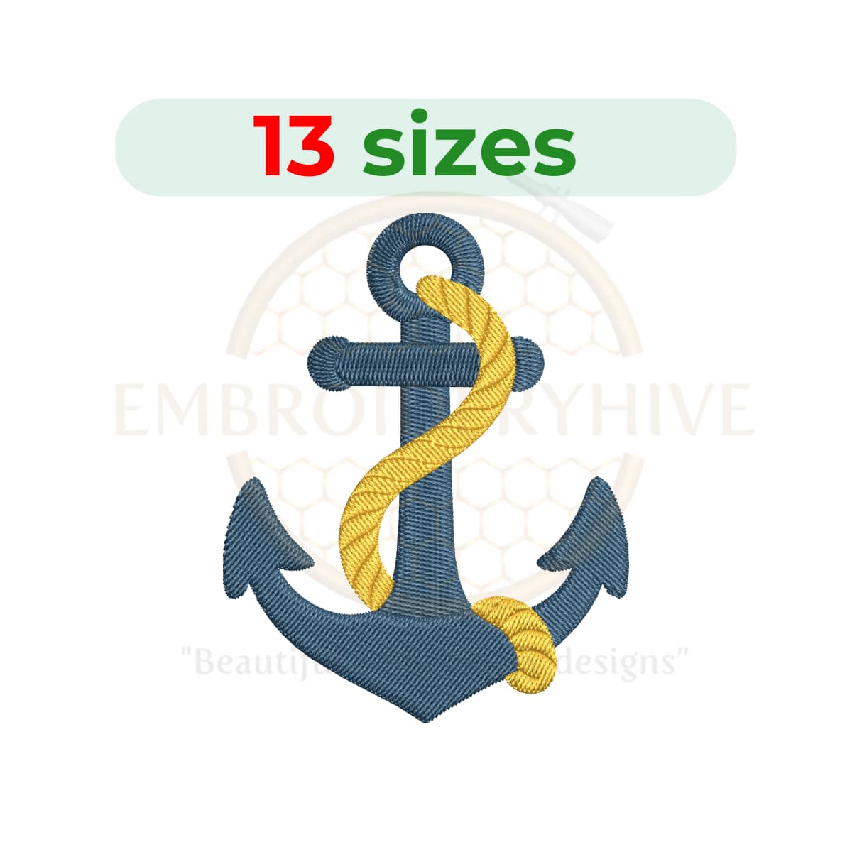 Anchor with rope embroidery design, 1.5-7.5 inch. machine embroidery, instant Download