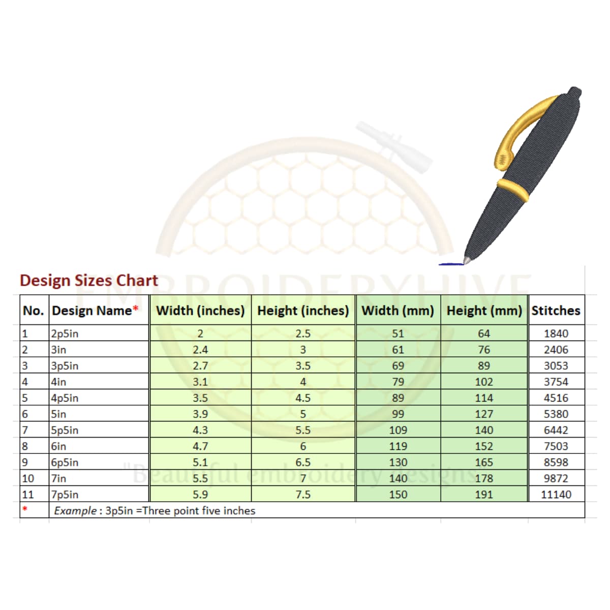 RESIZING NOTE: We recommend avoiding resizing or editing the design to maintain the best embroidery quality.