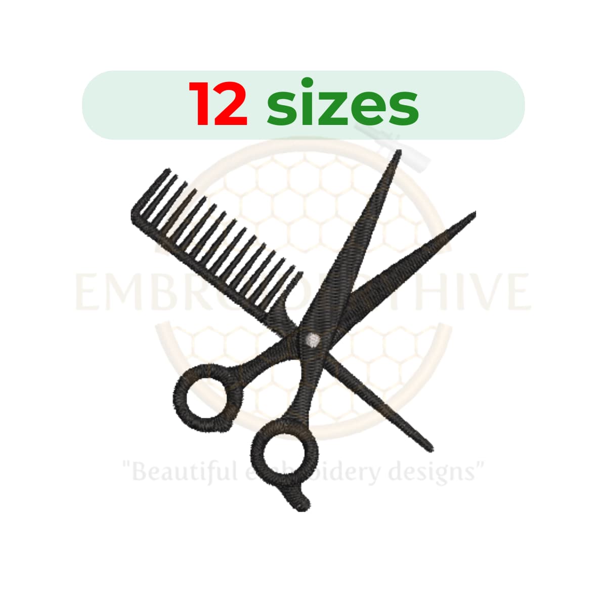 Comb and Scissors embroidery design