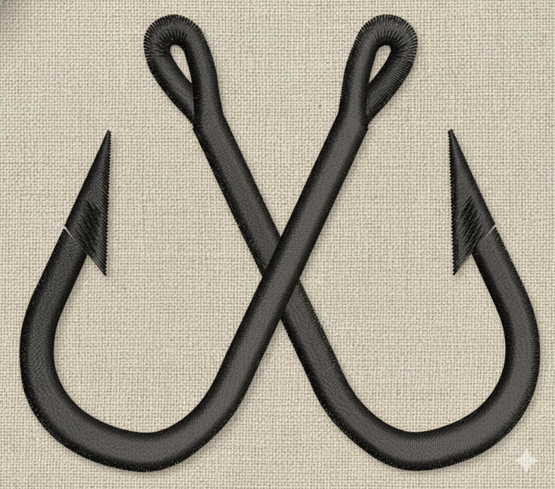 Crossed Fishing Hook Embroidery Design (1–7.5 inch) – Mini Fishing Hook, Machine Embroidery, Instant Download Digital File