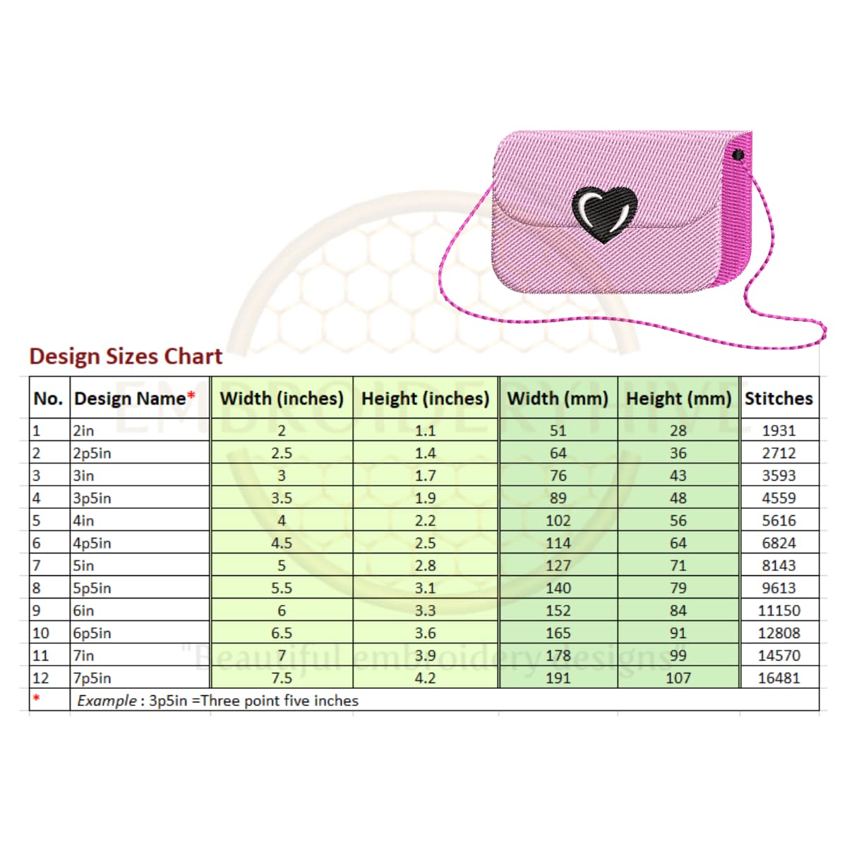 Purse handbag embroidery design. 2-7.5 inch. machine embroidery, instant Download