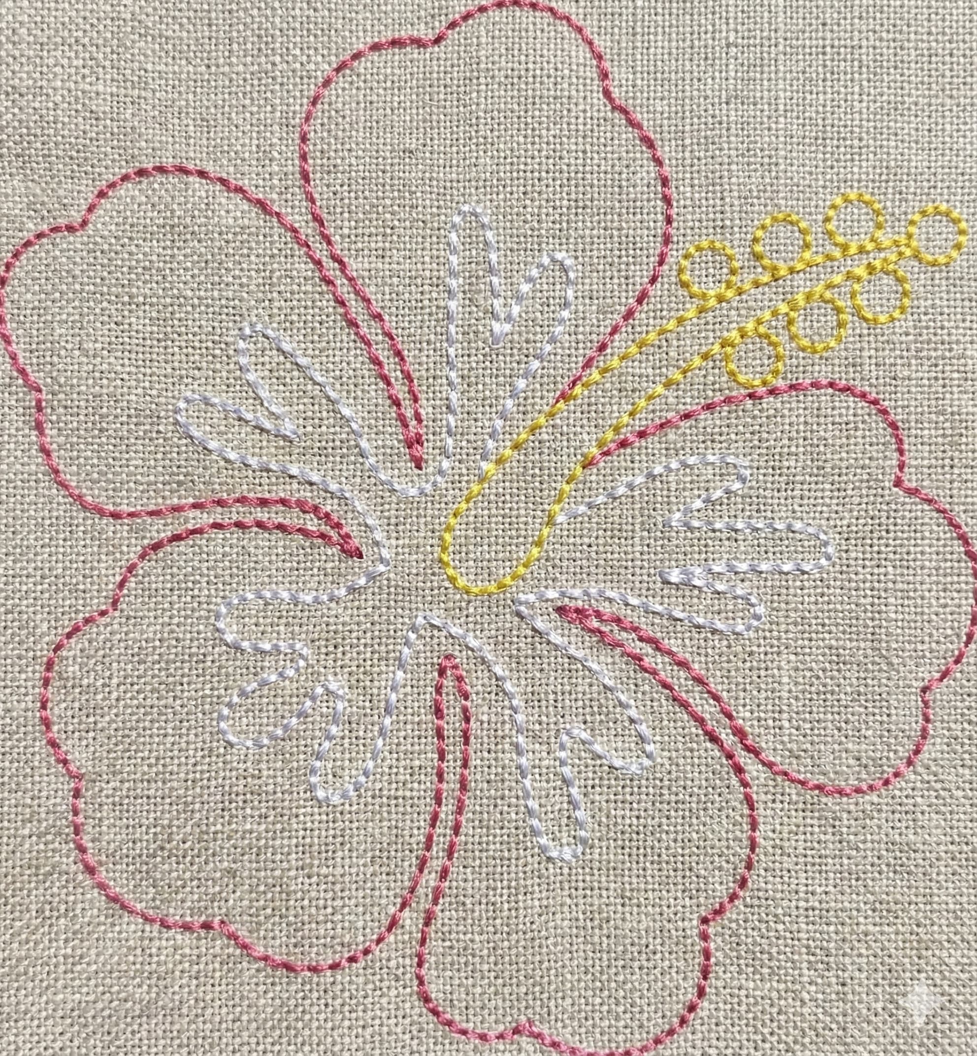 hibiscus outline embroidery design, 2–7.5 inches. Silhouette filled stitch pattern, ideal for clothing, quilts, accessories, and home décor. Instant digital download for your embroidery machine.