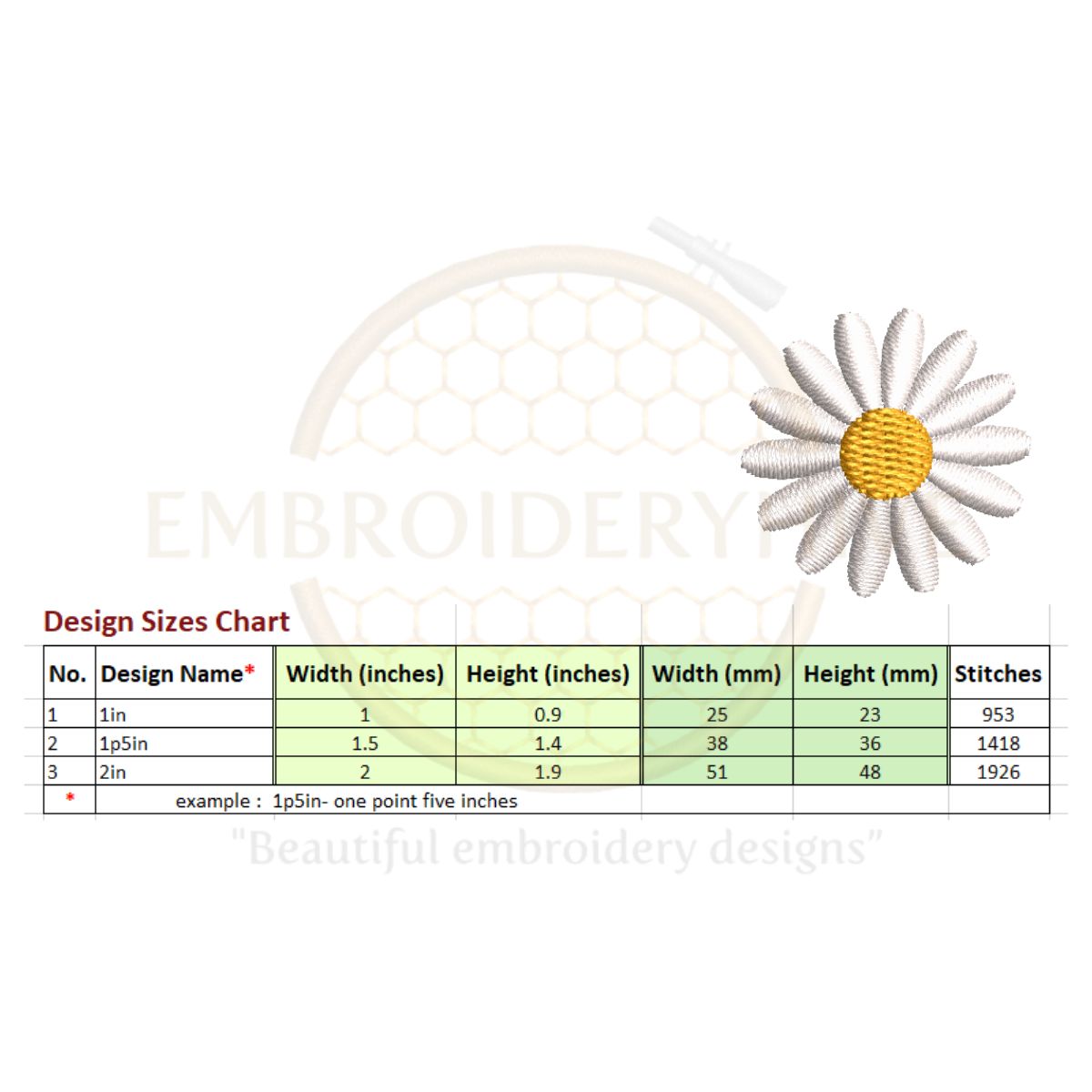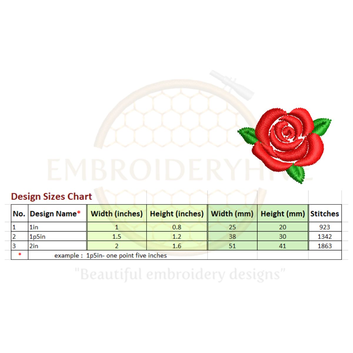 You will receive 3 sizes, ranging from 1 inches (25mm) to 2 inches (51mm) on each embroidery design, with each size increasing by 0.5 inches (12mm).