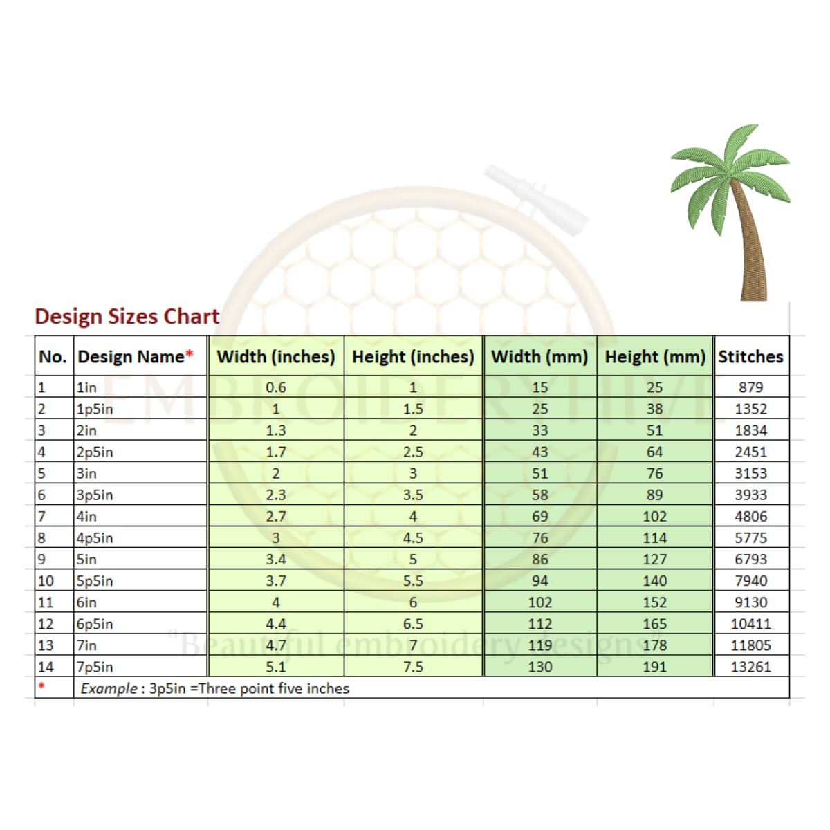-60%palm tree embroidery design, 1–7.5 inches. Silhouette filled stitch pattern, perfect for clothing, quilts, and home décor. Instant digital download.