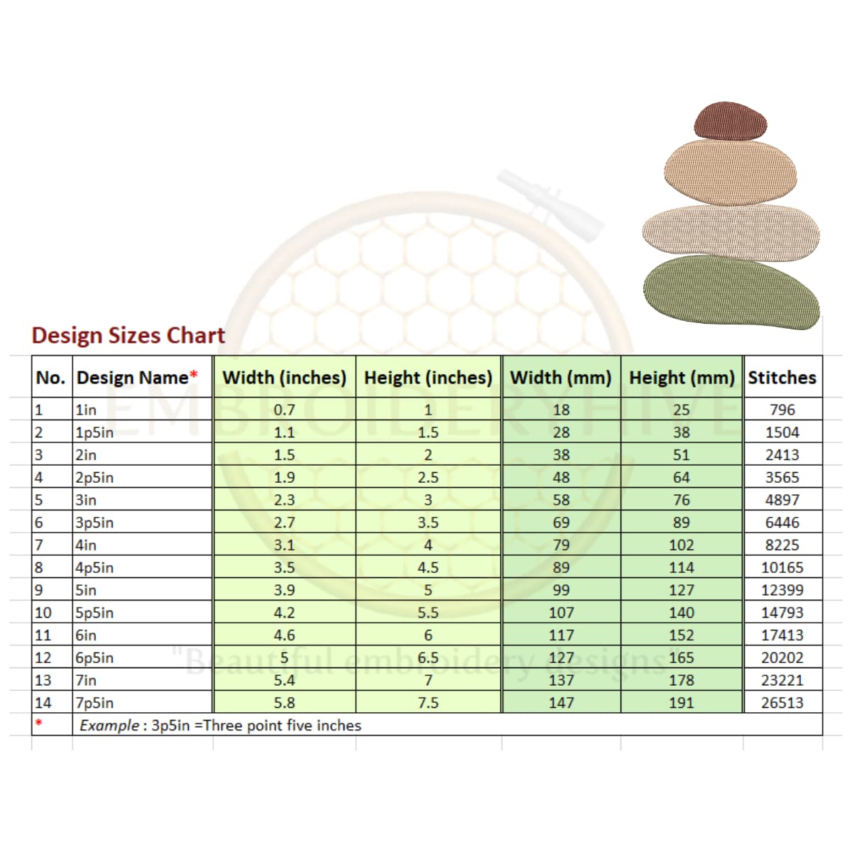 Rock Pile Embroidery Design – A digital download with 14 sizes, from 1" (25mm) to 7.5" (191mm), perfect for embroidery machines.