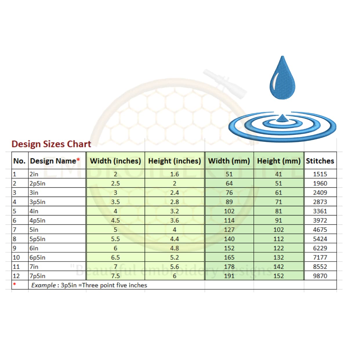 Water drop embroidery design. 2-7.5 inch. machine embroidery, instant Download