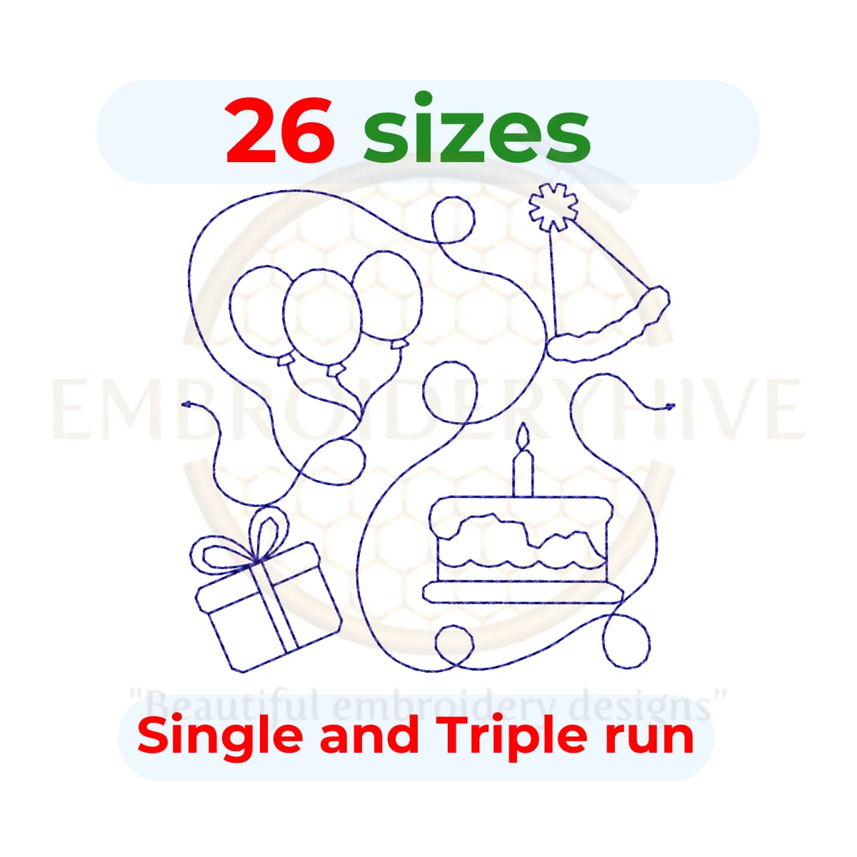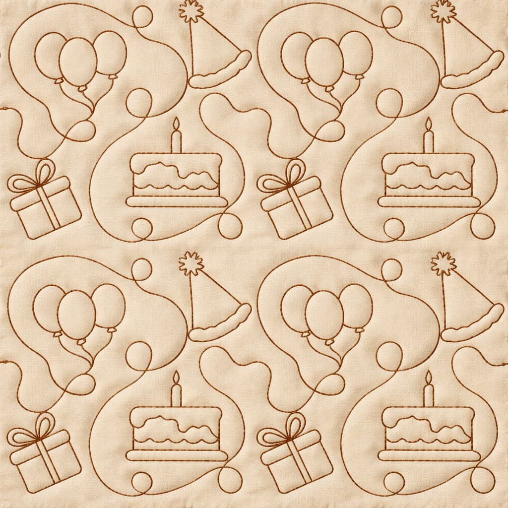 Birthday Quilting Embroidery Design | Edge to Edge Quilt Block