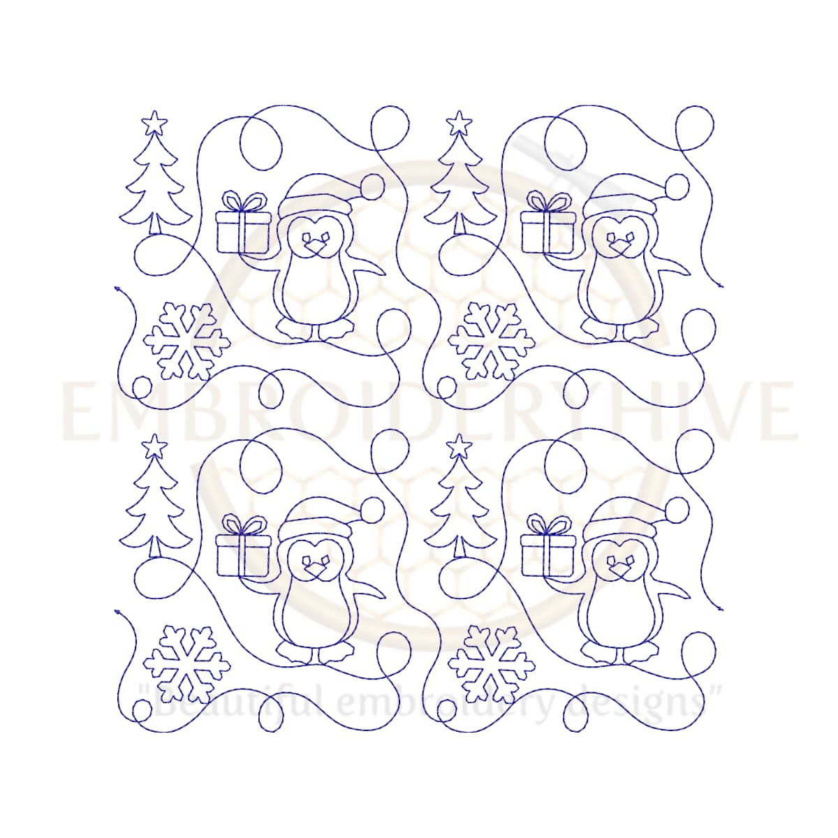 Christmas Penguin Quilting Embroidery Design | Edge to Edge Quilt Block