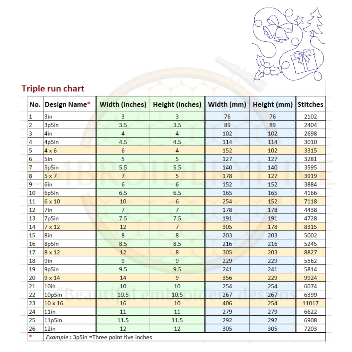 You will receive quilt block embroidery designs in two styles: single-run stitch and triple (bean) stitch. These designs come in square sizes for a perfect fit.