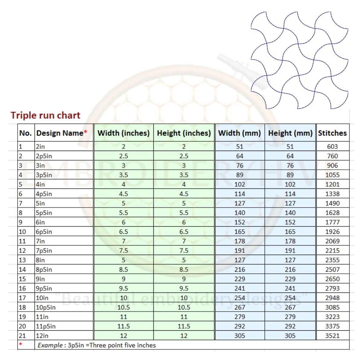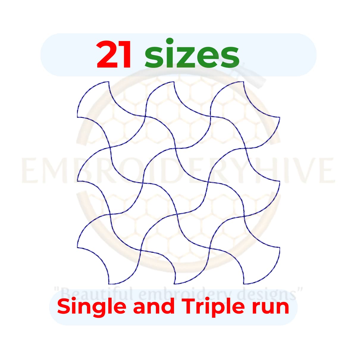 You will receive quilt block embroidery designs in two styles: single-run stitch and triple (bean) stitch. These designs come in square sizes for a perfect fit.