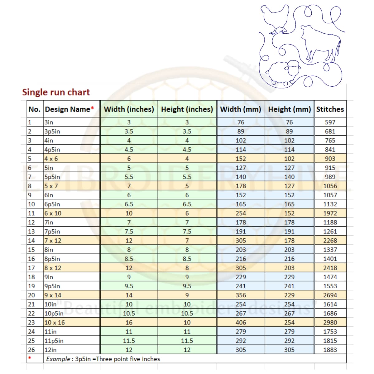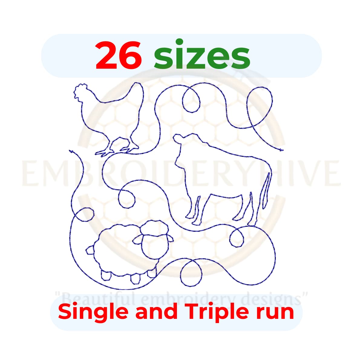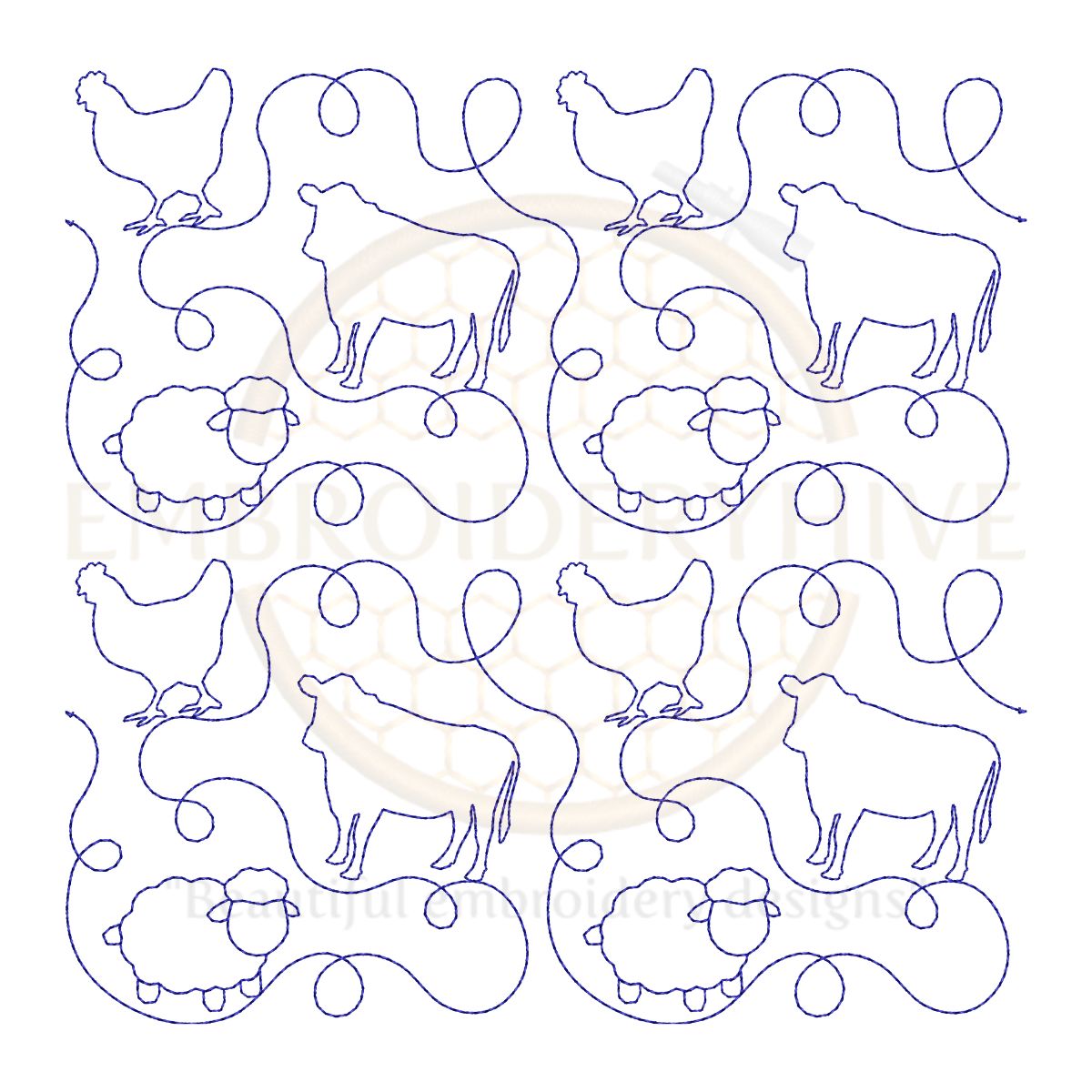 -50%Farm Animals Quilting Embroidery Design | Edge to Edge Quilt Block