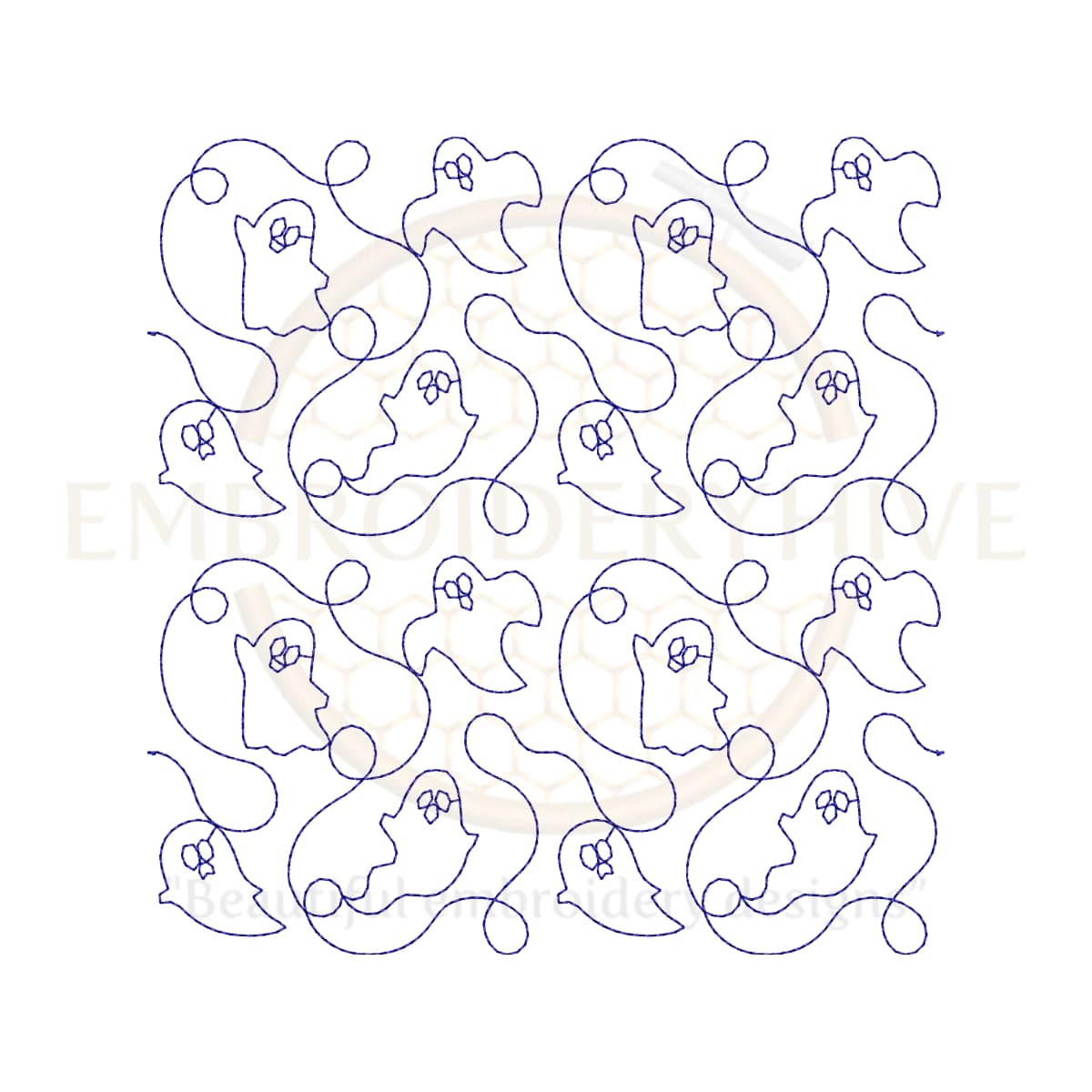Ghosts Quilting Embroidery Design | Edge to Edge Quilt Block