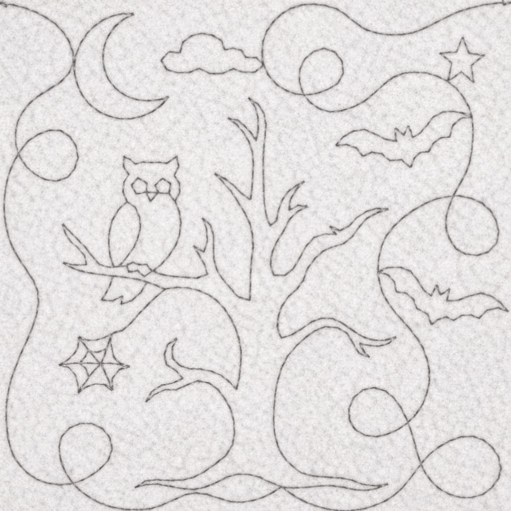 -50%Halloween Night Tree Quilting embroidery Design | Edge to Edge Quilt Block