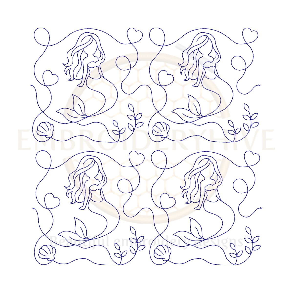 -50%Mermaid End to End Quilting Embroidery Design | Edge to Edge Quilt Block