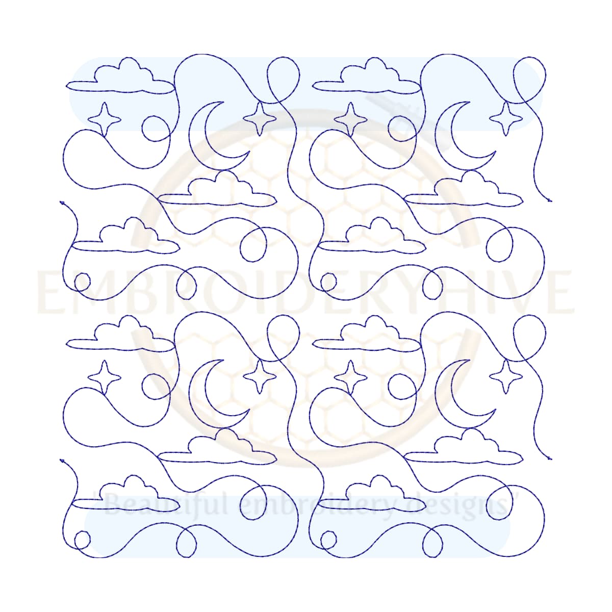 -50%Night Sky Quilting Embroidery Design | Edge-to-Edge Quilt Block for Longarm and Embroidery Machines