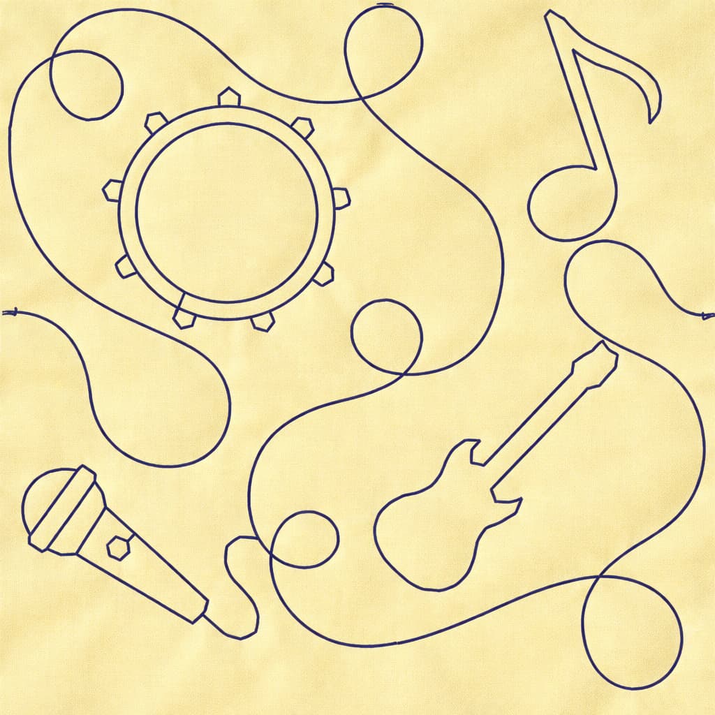 Rock Band quilting embroidery design, edge-to-edge quilt block for longarm & embroidery machines. Perfect for music-themed quilts, gifts, and home décor. Instant digital download.