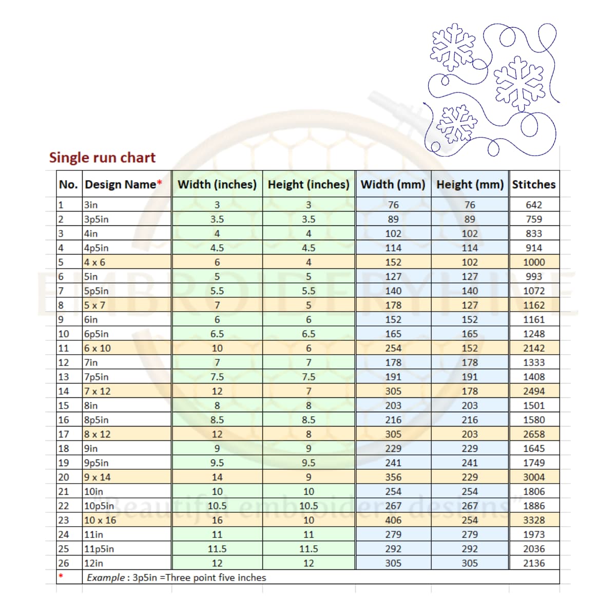 For 4×6 and 5×7 sizes, the design is stretched slightly to fit the rectangular shape. For larger sizes like 6×10, 7×12, 8×12, 9×14, and 10×16, two designs are joined together to fill the hoop completely.